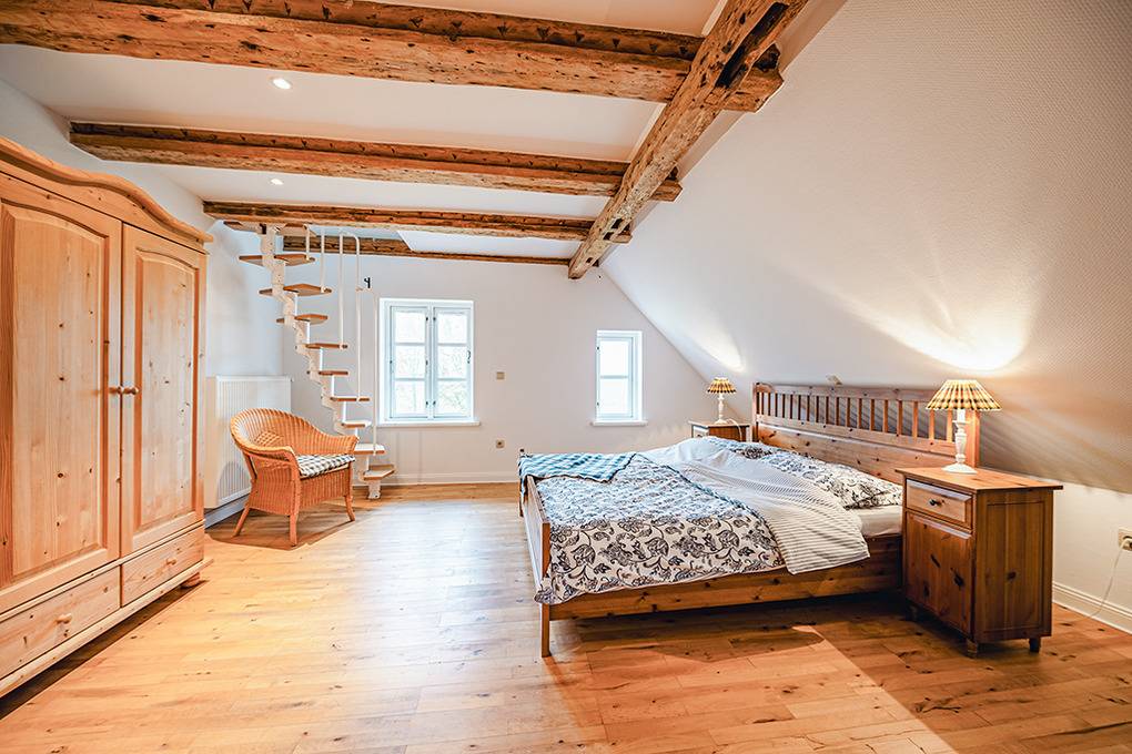 D 128.23A Wohnung 2-5 Pers.: 3-Zimmerwohnung, 70 qm Wohnfläche über 3 Etagen. Parterre: Großes Wohnzimmer (30 qm) mit Kaminofen, Couchgarnitur, Sat-TV, CD-Player, Esstisch, moderner Küchenzeile (Backofen, Spülmaschine). Terrasse mit Sitzmöbeln. 1. Etage: Galerie mit Einzelbett. Bad/WC. Doppelzimmer mit Stiege in offenen Spitzboden (leichte Schrägen): 2-Bettzimmer.