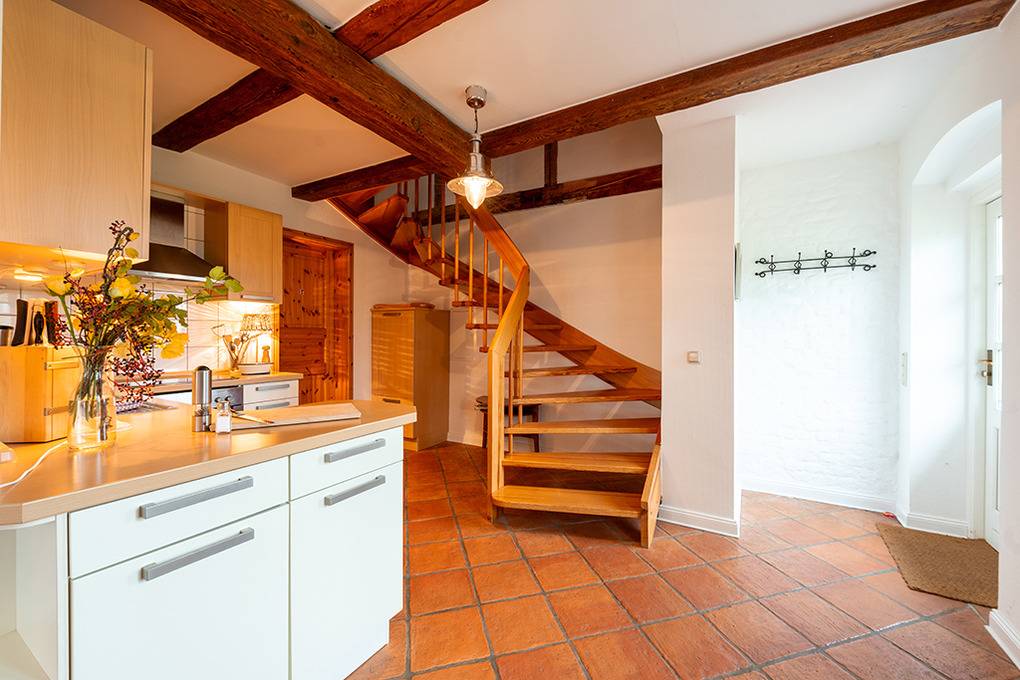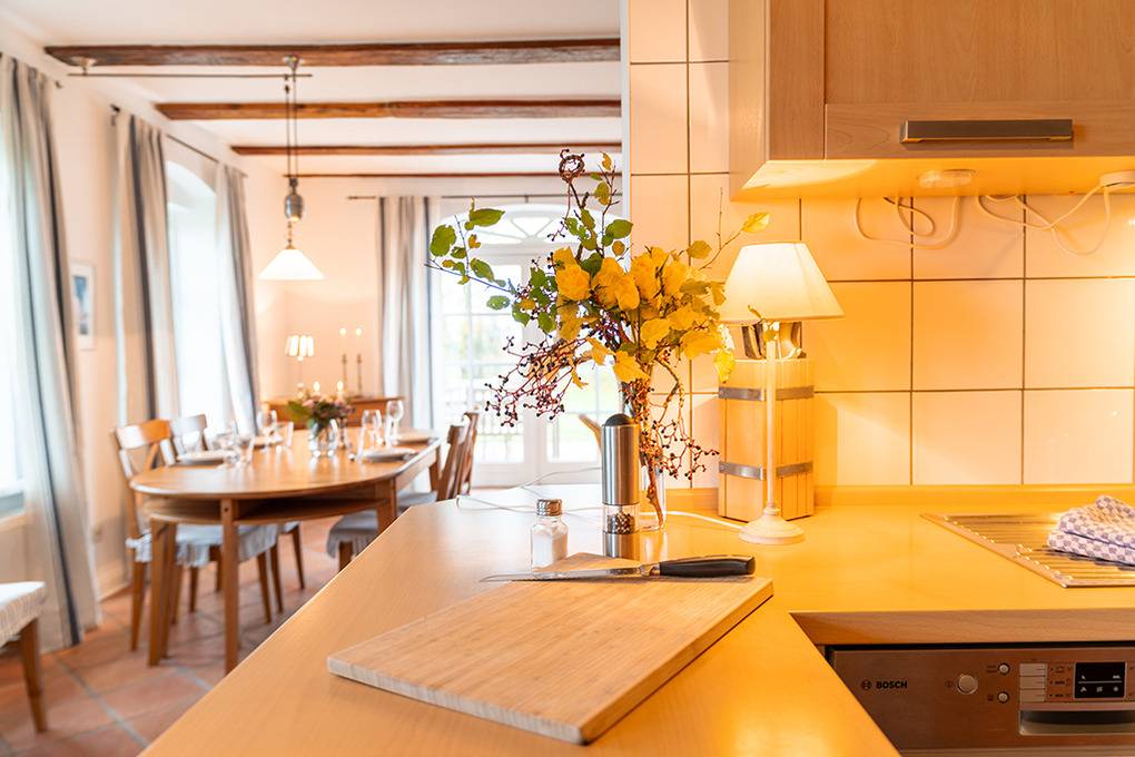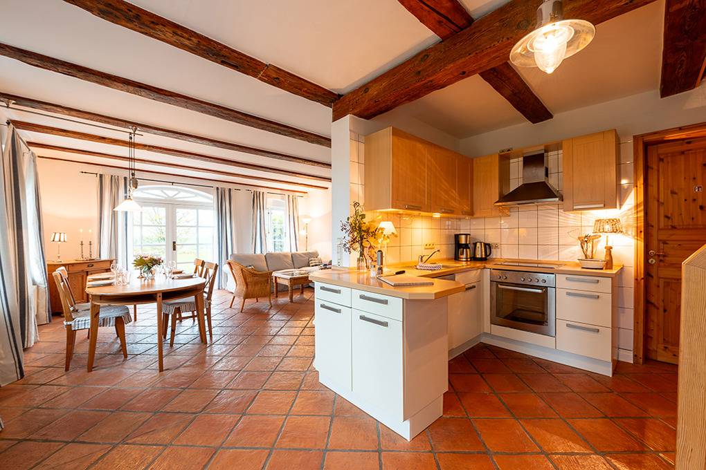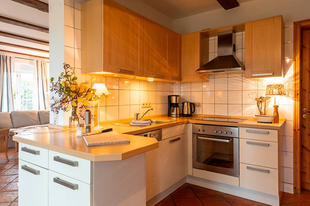 Haus: Exklusives Reetdachhaus mit herrlichem Wasserblick in idyllischer Alleinlage. 3 komfortable Ferienwohnungen mit großem Platzangebot, hochwertige, geschmackvolle Einrichtung. Alle Wohnungen haben Kaminofen, Terrasse mit Sitzmöbeln, Wasserblick, Waschmaschine im Haus. Zentralheizung.