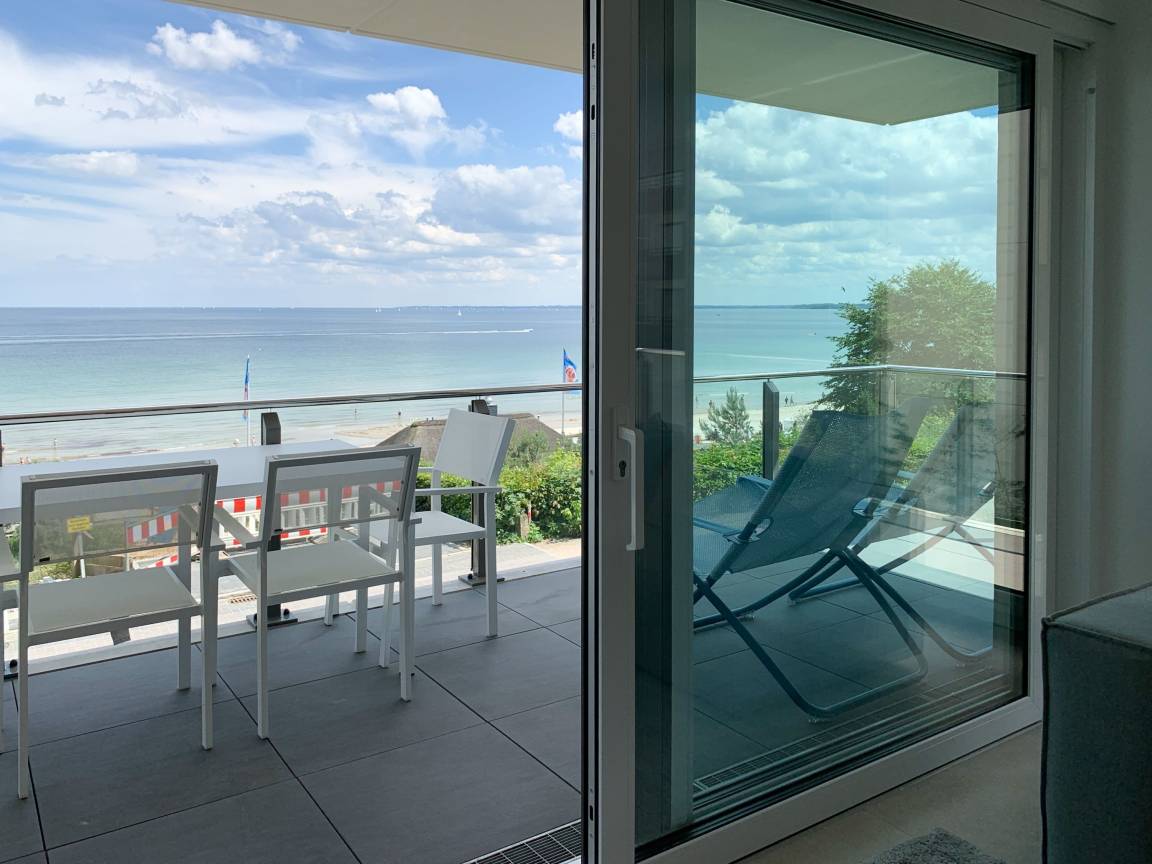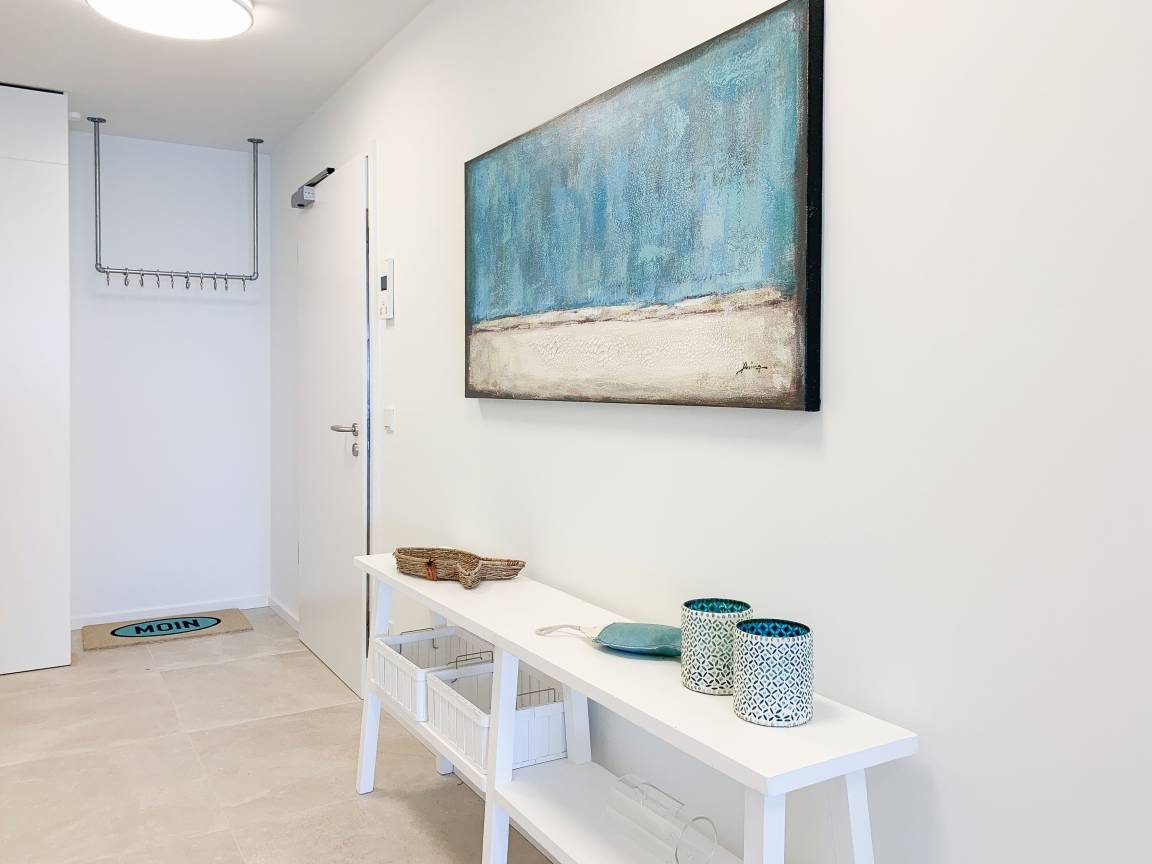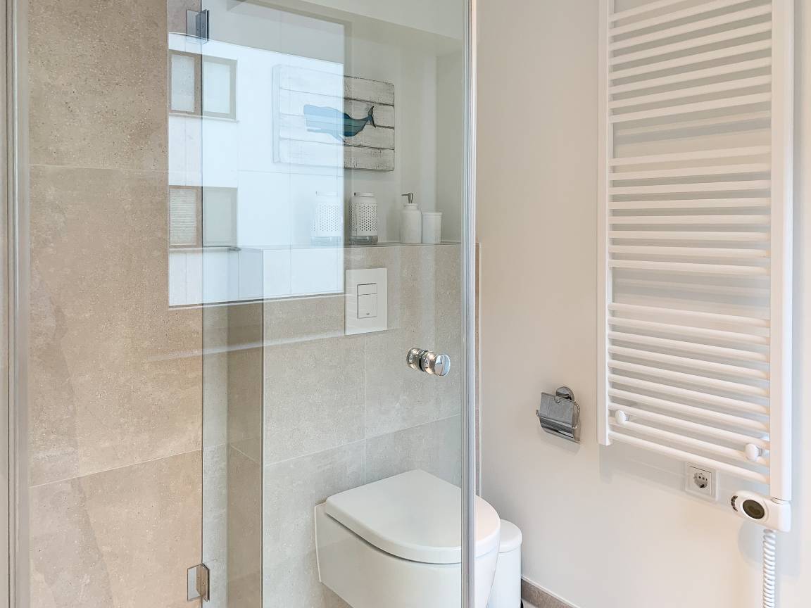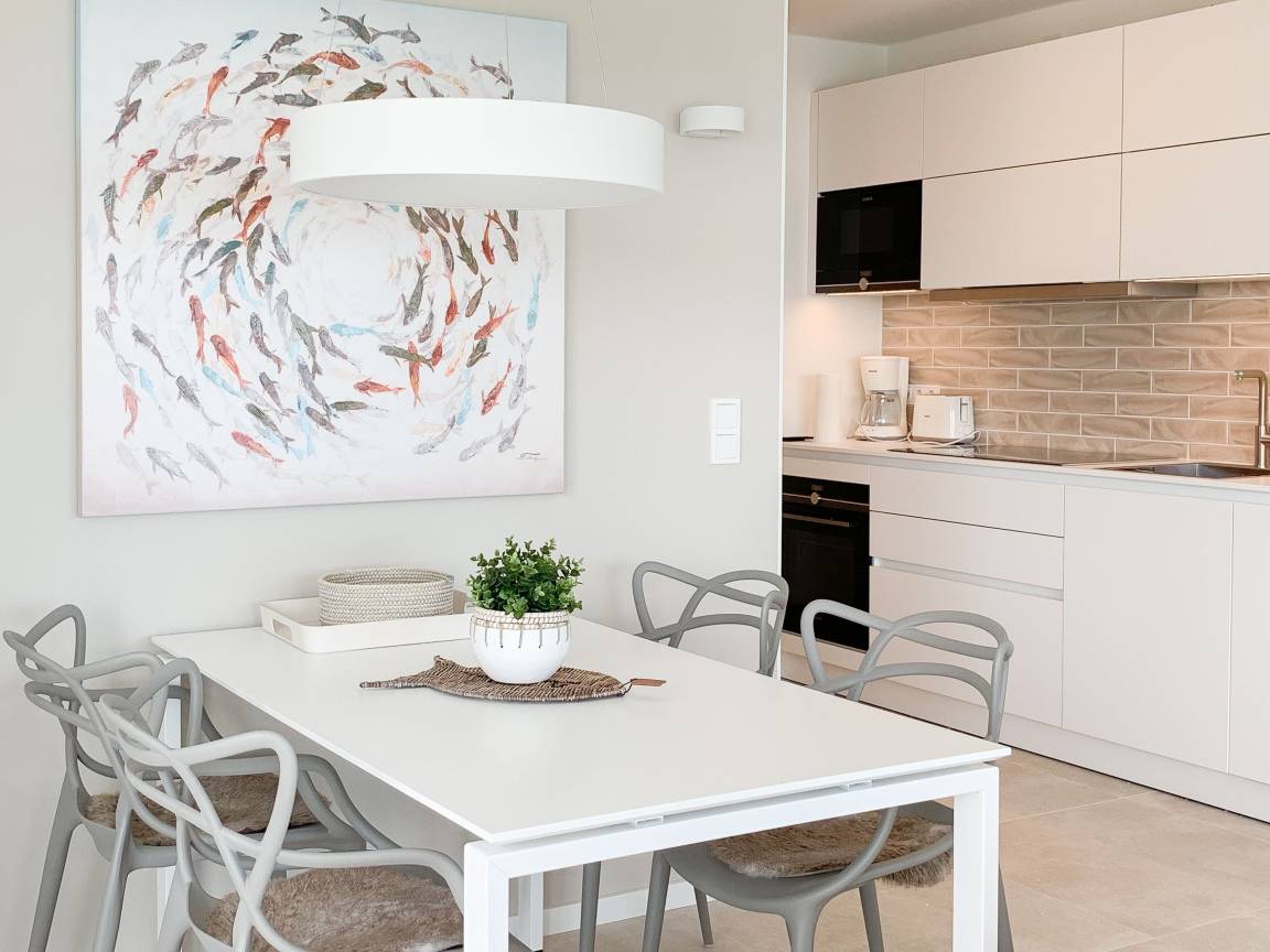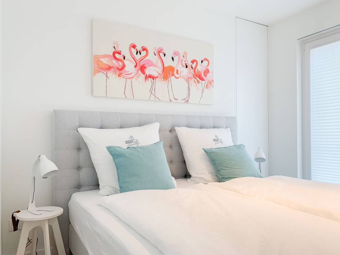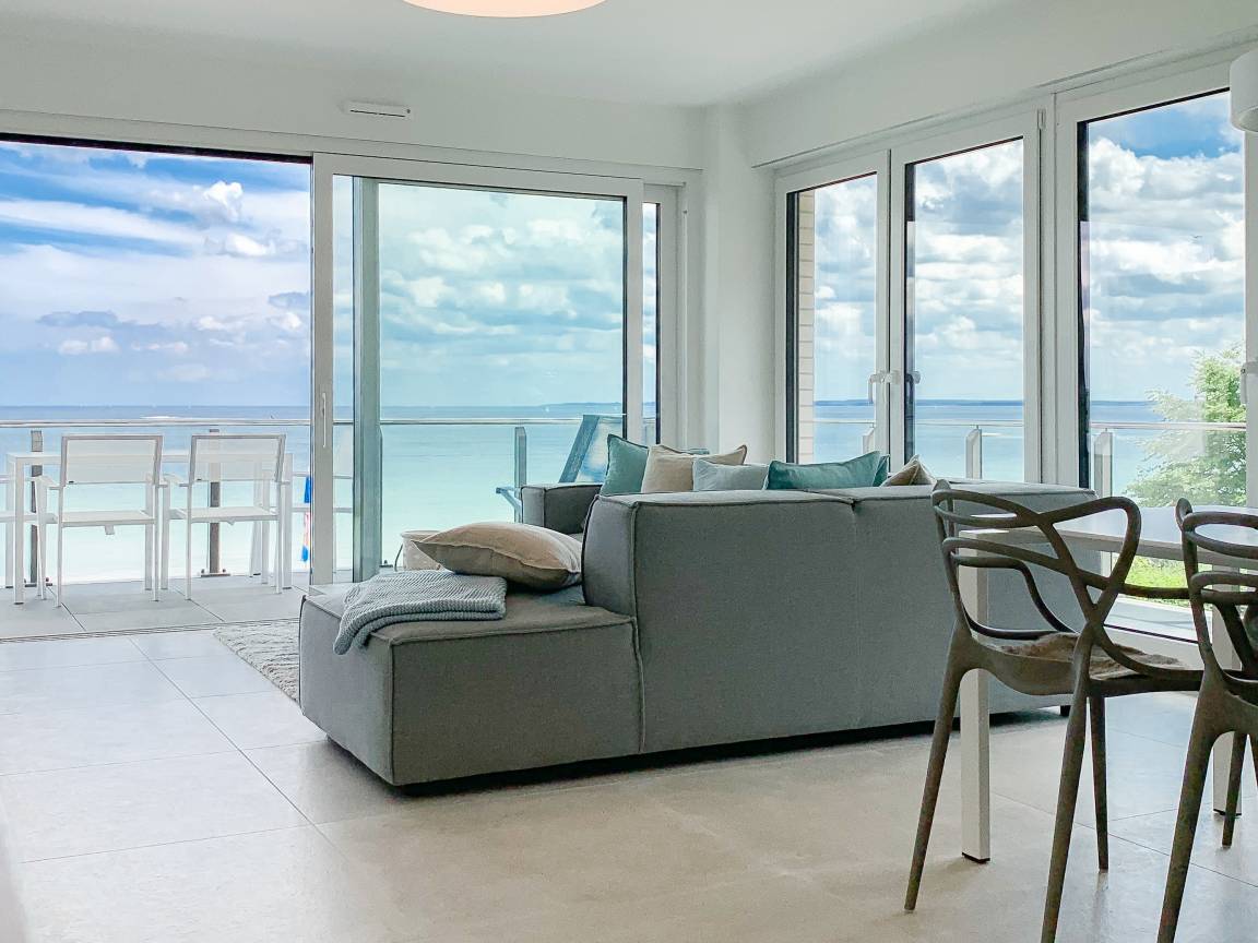 Die äußerst hochwertig ausgestattete und stilvoll eingerichtete Ferienwohnung bietet mit zwei Schlafzimmern und zwei Duschbädern jeglichen Komfort für vier Personen, um einen tollen Urlaub zu verleben. Der großzügige Wohn- und Essbereich mit traumhaftem Meerblick bildet das Herzstück der Wohnung. Viel Licht und zeitgemäßer Luxus sorgen für eine herrliche Atmosphäre zum Wohlfühlen. Der großzügige Balkon in Südost Ausrichtung wird garantiert zum Lieblingsplatz. Schon beim Frühstücken die salzige Ostseeluft schnuppern und der Brandung lauschen oder einfach den Weitblick auf das Meer bei einem Glas Wein genießen. Die Designküche ist selbstverständlich perfekt ausgestattet und verfügt nur über hochwertige Markengeräte. Es stehen zwei TV, ein Sonos Bluetooth Lautsprecher, Radio und WLAN zur Verfügung. Die Wohnung ist mit einer Fußbodenheizung ausgestattet und alle Fenster sind mit elektrischen Außenjalousien versehen. Waschmaschine und Trockner sind im Flur der Wohnung in einem Einbauschrank untergebracht. Die Wohnung befindet sich in der ersten Etage und ist bequem mit Fahrstuhl zu erreichen. Auf dem Grundstück ist ein fester PKW Stellplatz (Carport) reserviert. Fahrräder können sicher und trocken im Fahrradkeller untergestellt werden.