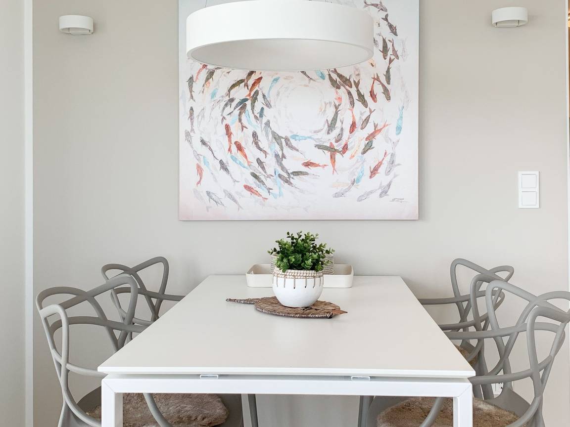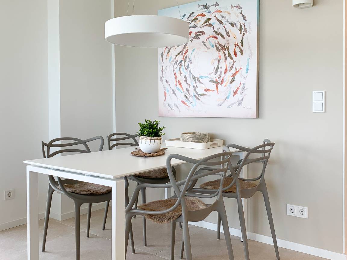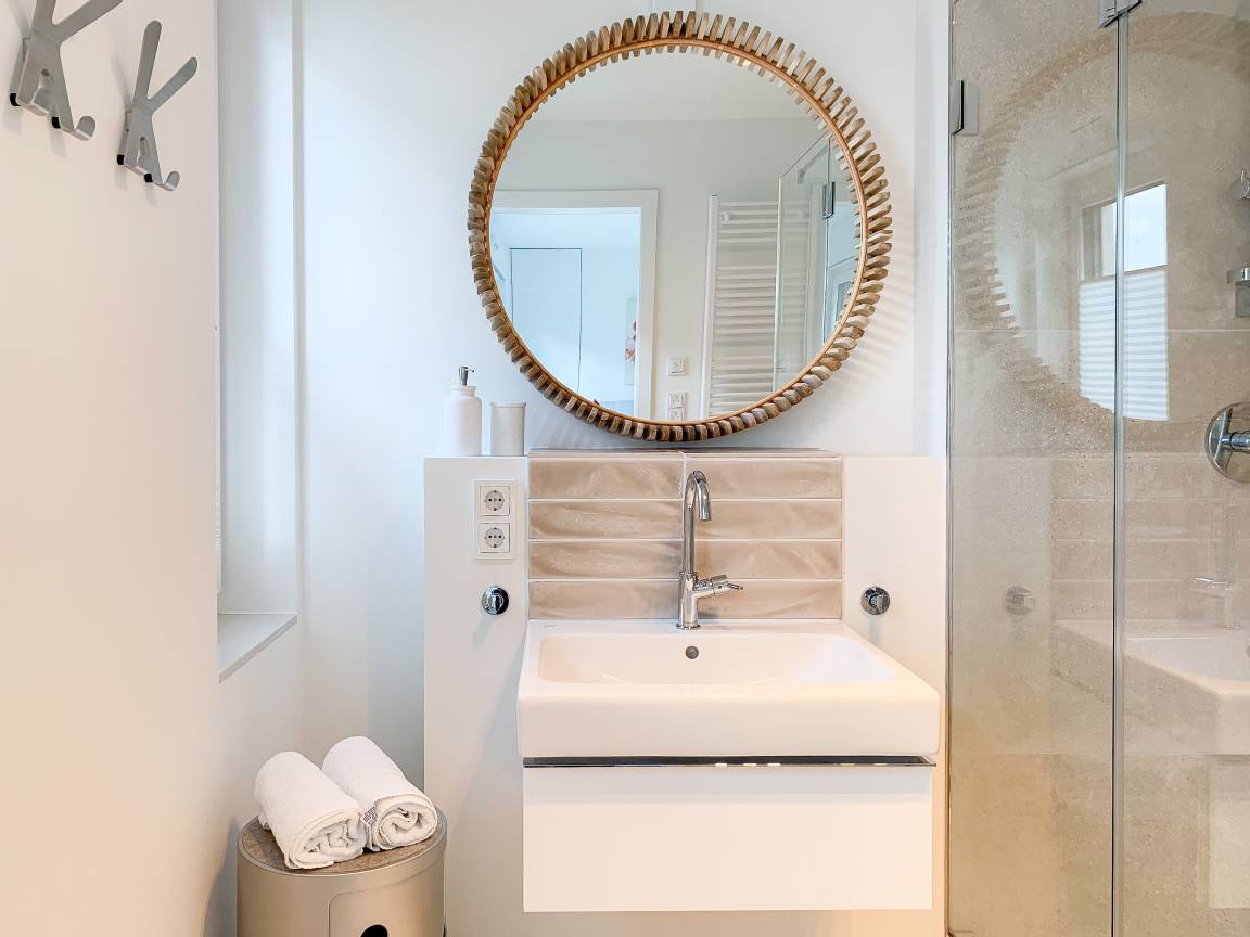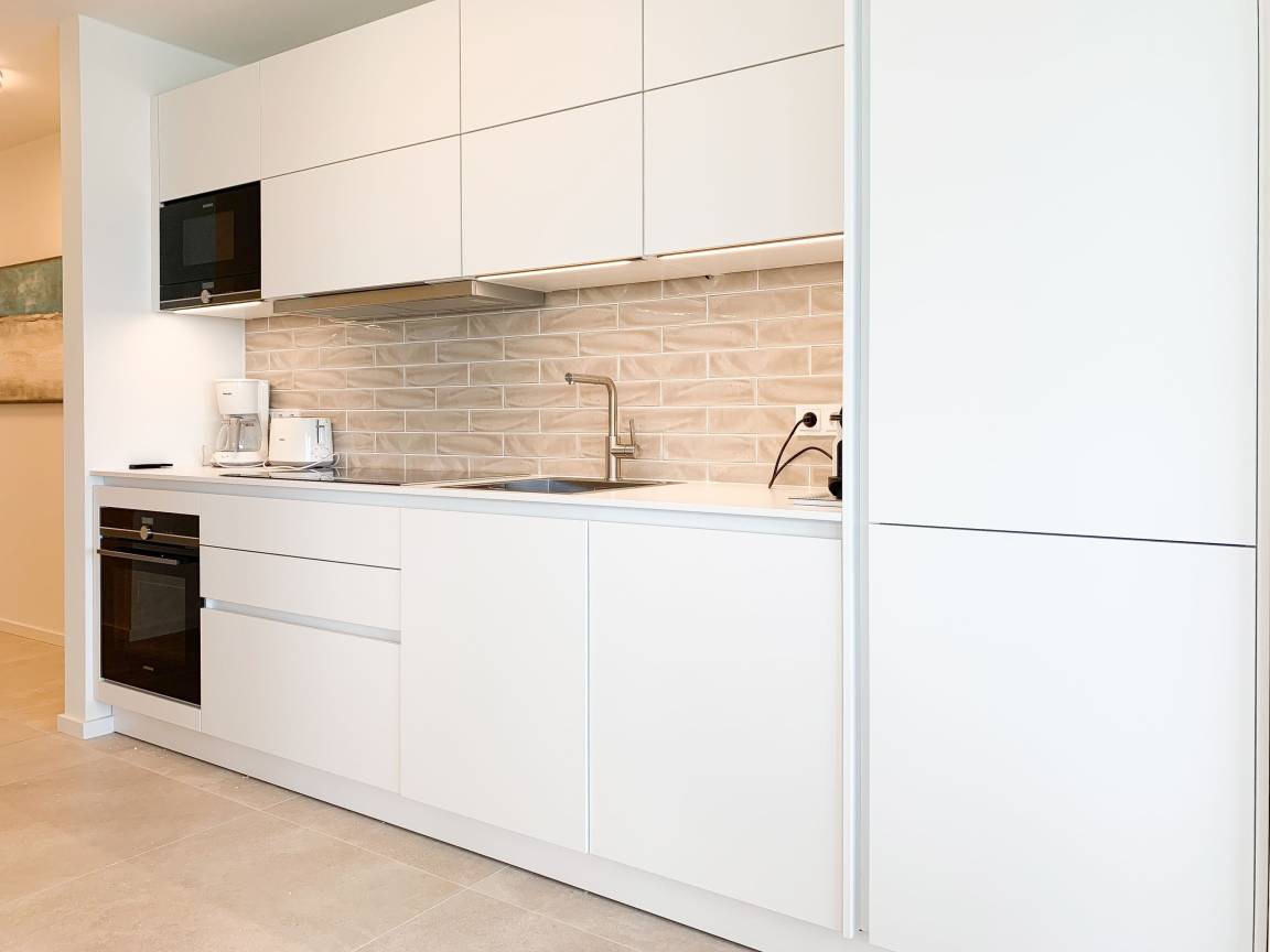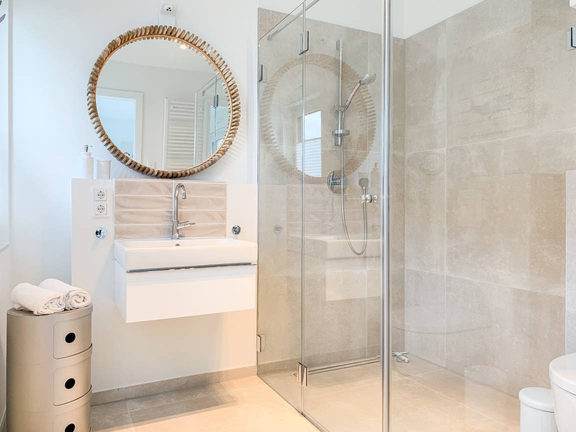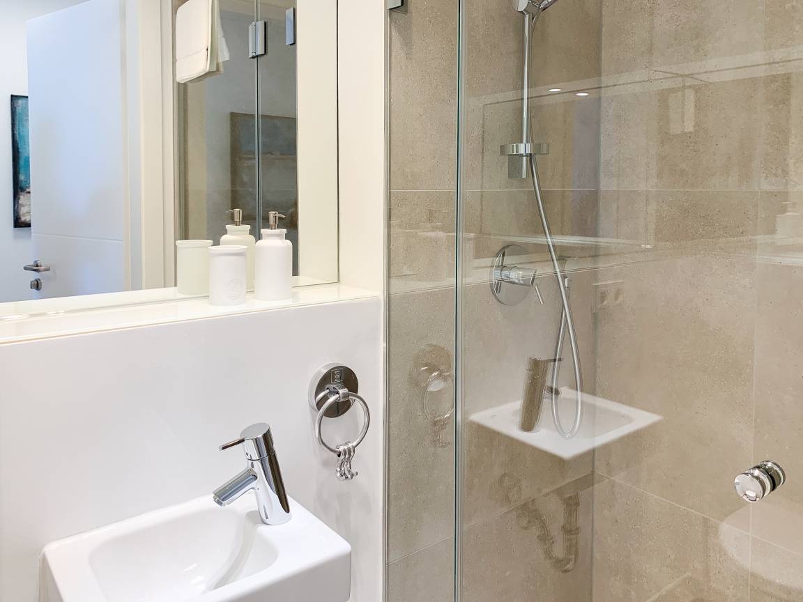 Die äußerst hochwertig ausgestattete und stilvoll eingerichtete Ferienwohnung bietet mit zwei Schlafzimmern und zwei Duschbädern jeglichen Komfort für vier Personen, um einen tollen Urlaub zu verleben. Der großzügige Wohn- und Essbereich mit traumhaftem Meerblick bildet das Herzstück der Wohnung. Viel Licht und zeitgemäßer Luxus sorgen für eine herrliche Atmosphäre zum Wohlfühlen. Der großzügige Balkon in Südost Ausrichtung wird garantiert zum Lieblingsplatz. Schon beim Frühstücken die salzige Ostseeluft schnuppern und der Brandung lauschen oder einfach den Weitblick auf das Meer bei einem Glas Wein genießen. Die Designküche ist selbstverständlich perfekt ausgestattet und verfügt nur über hochwertige Markengeräte. Es stehen zwei TV, ein Sonos Bluetooth Lautsprecher, Radio und WLAN zur Verfügung. Die Wohnung ist mit einer Fußbodenheizung ausgestattet und alle Fenster sind mit elektrischen Außenjalousien versehen. Waschmaschine und Trockner sind im Flur der Wohnung in einem Einbauschrank untergebracht. Die Wohnung befindet sich in der ersten Etage und ist bequem mit Fahrstuhl zu erreichen. Auf dem Grundstück ist ein fester PKW Stellplatz (Carport) reserviert. Fahrräder können sicher und trocken im Fahrradkeller untergestellt werden.