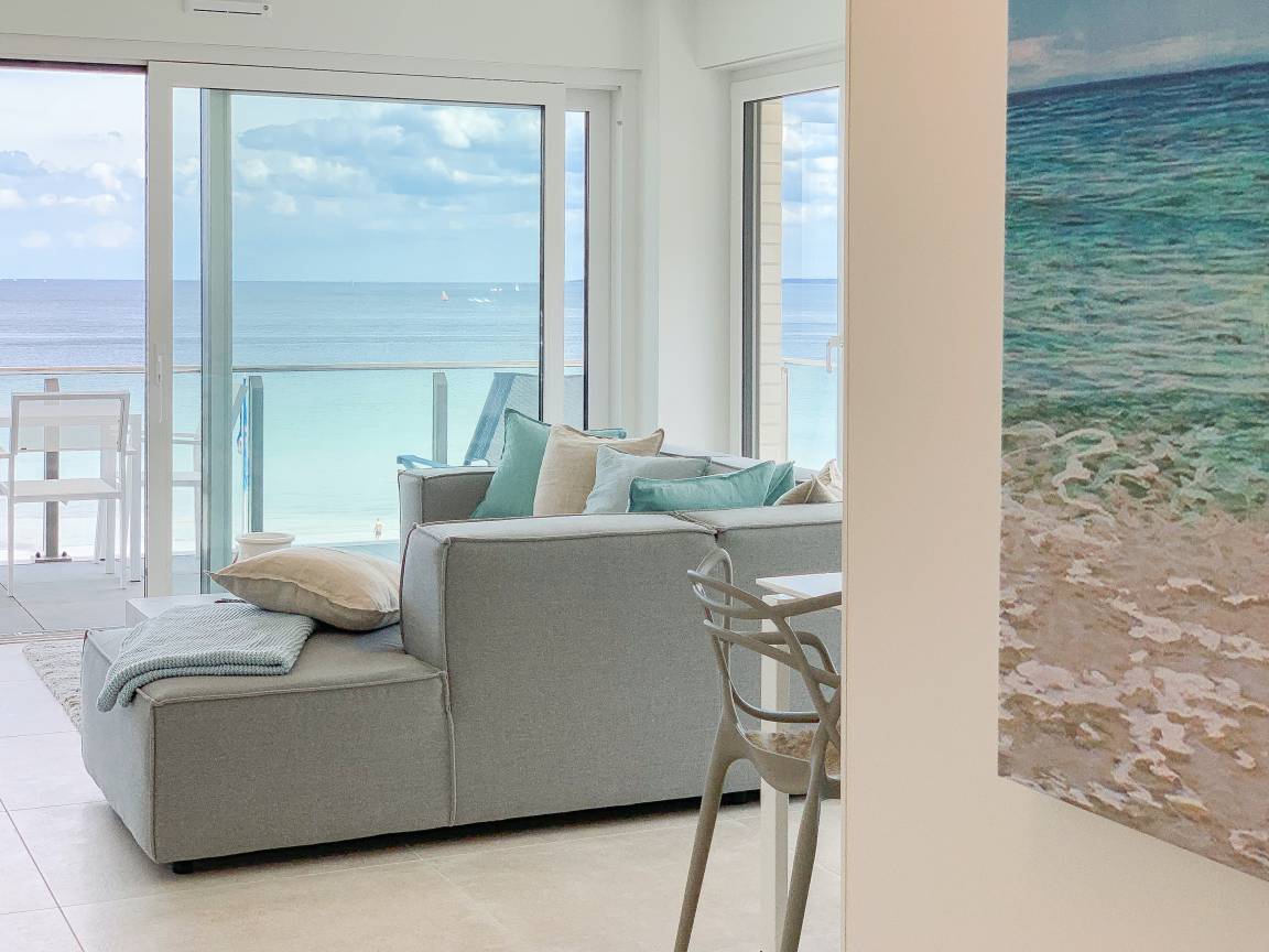 Die exklusive Ferienwohnung mit atemberaubendem Meerblick über die gesamte Lübecker Bucht befindet sich in absoluter Bestlage in erster Reihe zum Meer. Der herrliche Sandstrand und die Ostsee liegen Ihnen zu Füßen. Absolute Ruhe und dennoch nur 3 Minuten fußläufig von der belebten Scharbeutzer Dünenmeile mit zahlreichen Restaurants, Cafés, Strandbars und schönen Geschäften zum Bummeln entfernt. Ein Strandkorb steht (saisonbedingt Mitte Mai bis Mitte September) gegenüber am Strand kostenlos zur Verfügung.