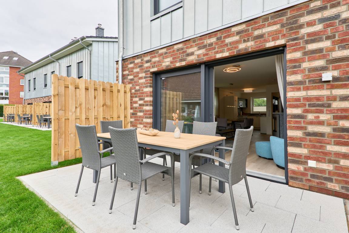 Endreihenhaus, ca. 100 m² auf zwei Ebenen, 3 Schlafzimmer, 2 Bäder, für bis zu 6 Personen, Südterrasse, Außenstellplatz mit E-Ladestation