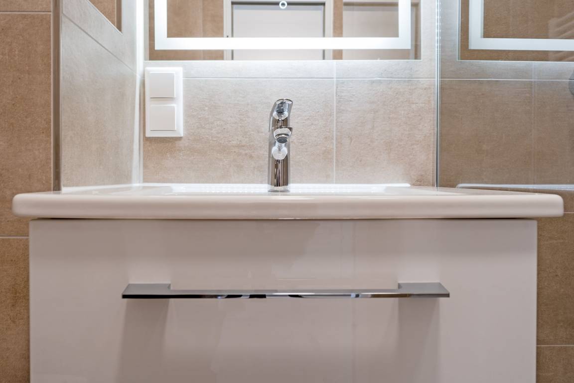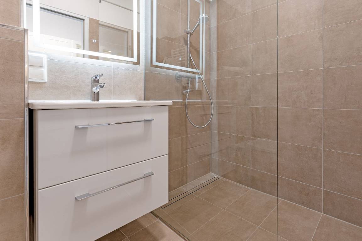 Im kombinierten Wohn- und Schlafraum finden Sie Ruhe im Doppelbett (2x 80x200 cm) oder auf dem Schlafsofa (120x195 cm). Das angrenzende Badezimmer bietet Ihnen ein Rundum-Wohlfühlpaket mit bodengleicher Dusche und Haartrockner. In der vom Eingangsbereich abgehenden, offenen Küche finden Sie neben einem Kühlschrank mit Gefrierfach und Toaster unter anderem auch ein Kombigerät mit Mikrowelle- und Backofenfunktion.