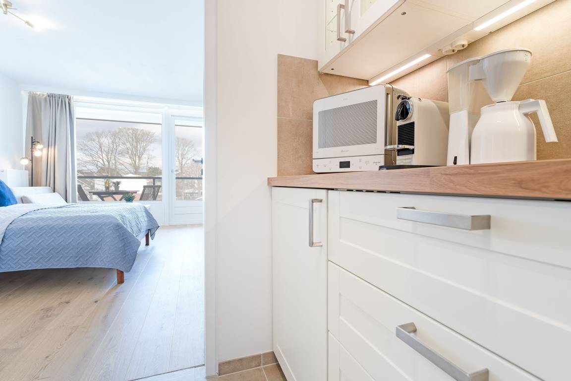 Diese hochwertig eingerichtete 1-Zimmer-Wohnung bietet mit 31 m² Wohnfläche genug Platz für bis zu 2 Erwachsene und ein Kind. Genießen Sie die Strandnähe vom Balkon mit seitlichem Meerblick auf die neu gestaltete Seebrücke, wenn Sie den ersten Kaffee des Morgens trinken. Die Nespresso-Maschine steht schon für Sie bereit.