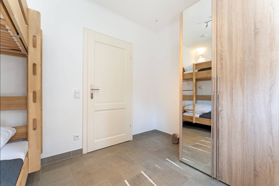 Schlafzimmer 2: 1 Etagenbett (je 90x200cm, je bis 150 kg geeignet), Kleiderschrank, Verdunkelung: Außenrollläden