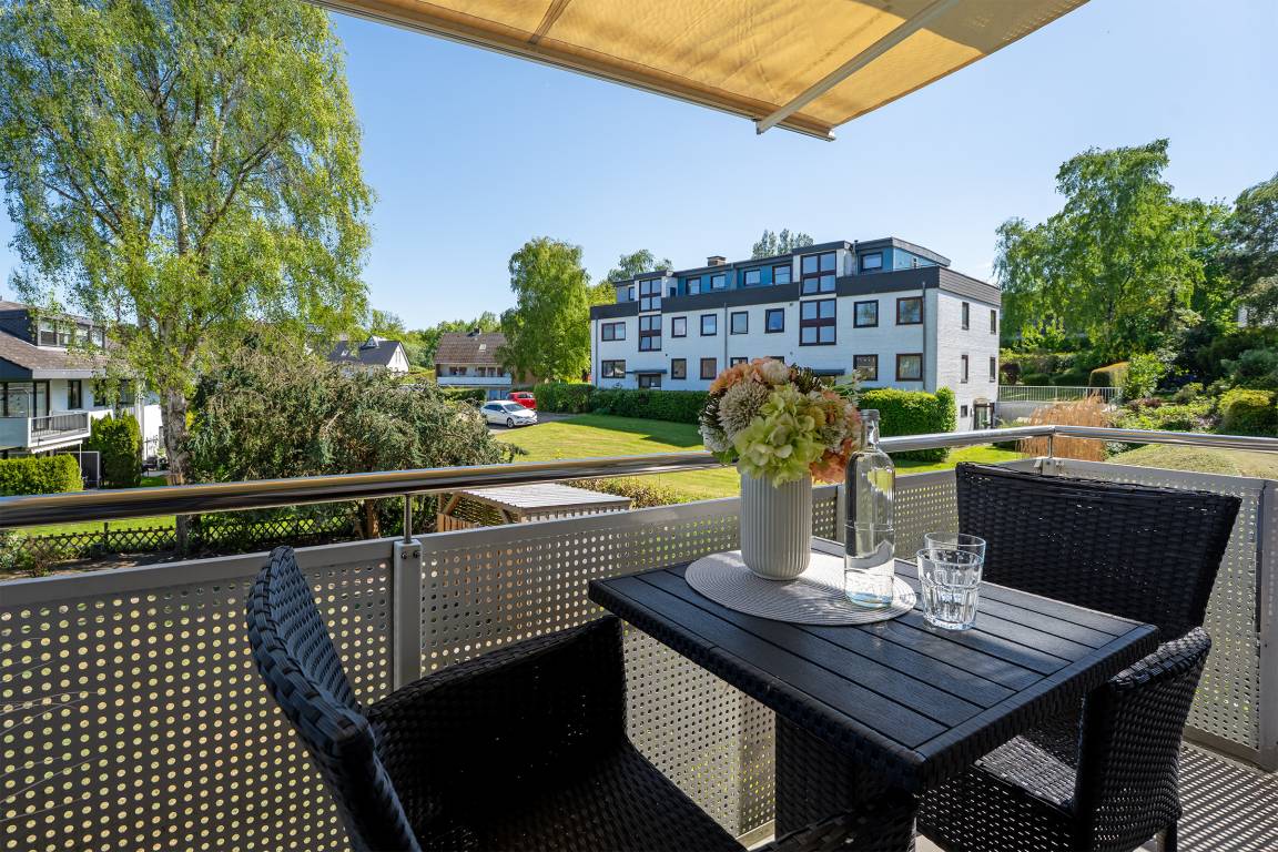Der helle Wohnbereich mit bequemer Sitzecke und offen gestalteter Küche lädt zum Verweilen ein. Die Küche ist vollständig ausgestattet – ob für ein ausgiebiges Frühstück oder ein gemütliches Abendessen nach einem Strandtag, hier bleiben keine Wünsche offen. Vom Wohnbereich aus gelangen Sie direkt auf den möblierten Balkon, wo Sie bei frischer Meeresluft und einer Tasse Kaffee entspannen können.