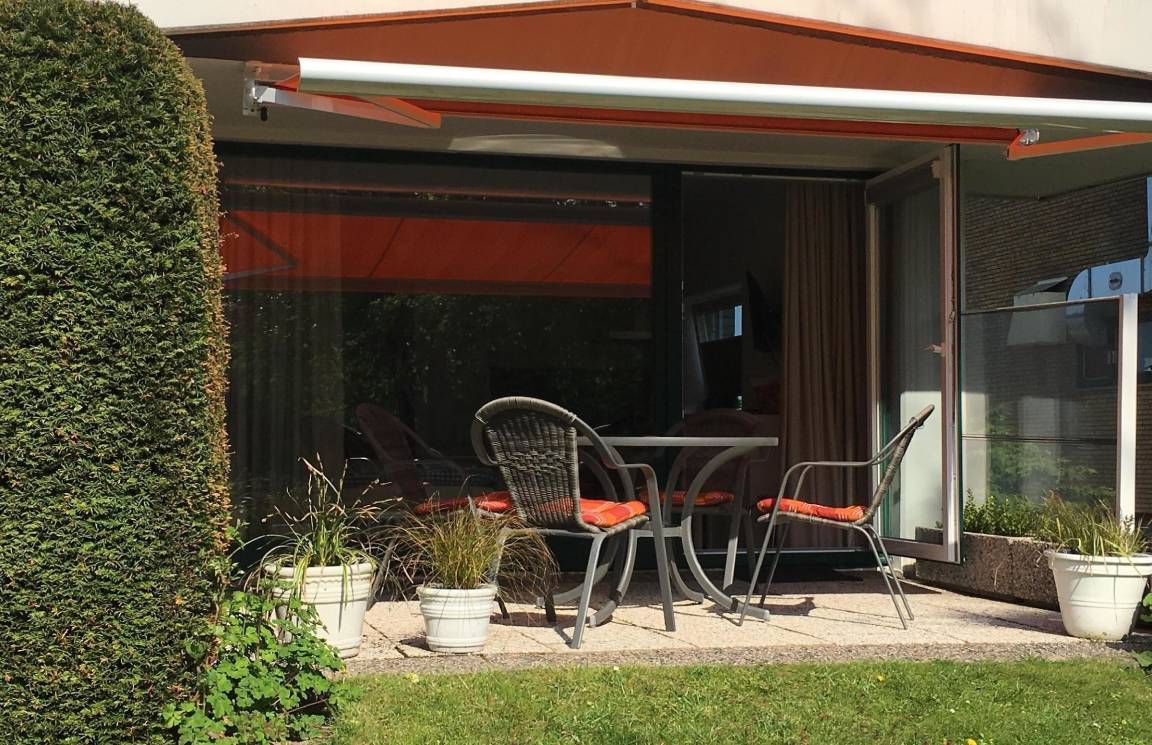 Das Ferienappartement am Hang 7 - Haus Riviera überzeugt mit einem ansprechenden Außenbereich. Die großzügige, nach Südwesten ausgerichtete Terrasse bietet viel Platz, um die Sonne und die Ruhe des gepflegten Gartens zu genießen. Eine neue Markise sorgt für Schatten an heißen Tagen. Gäste haben zudem Zugang zu einem beheizten Außenschwimmbad, das in der Regel vom 15. Mai bis 15. September geöffnet ist. Der Gartenbereich ist gemeinschaftlich nutzbar, was gesellige Stunden im Freien ermöglicht. Zur naheliegenden Strandpromenade sind es nur wenige Schritte, und die nächste Bäckerei befindet sich in nur 150 m Entfernung. Diese erstklassige Lage an einer ruhigen Straße und der direkte Zugang zum Meer machen den Außenbereich zu einem echten Highlight des Appartements.