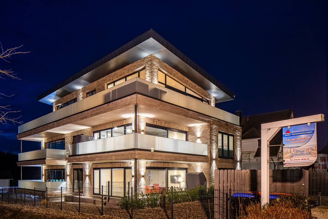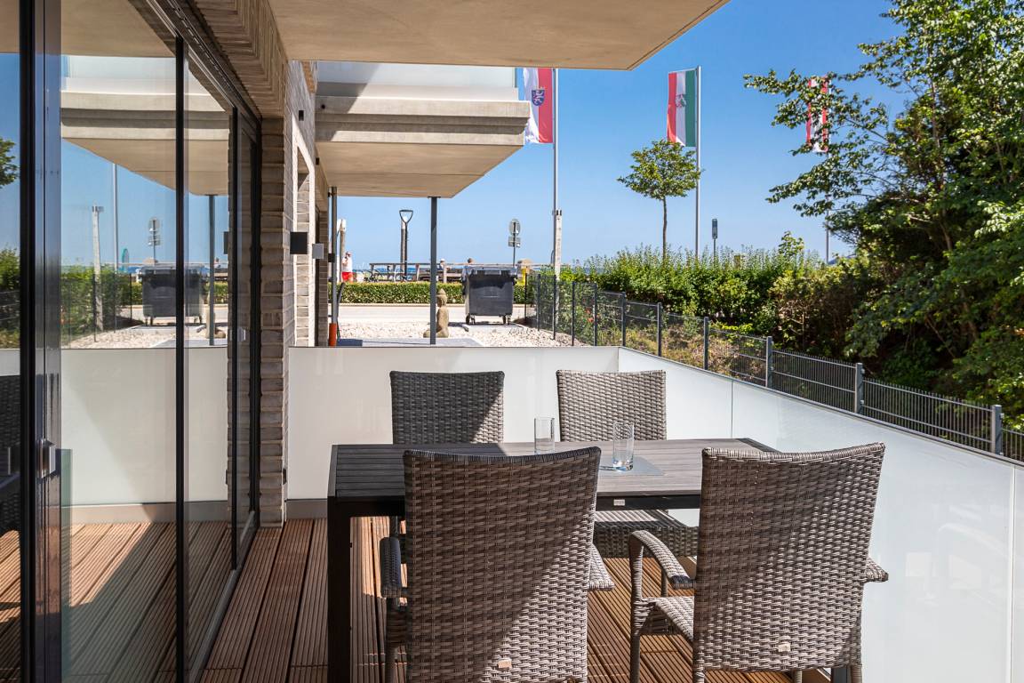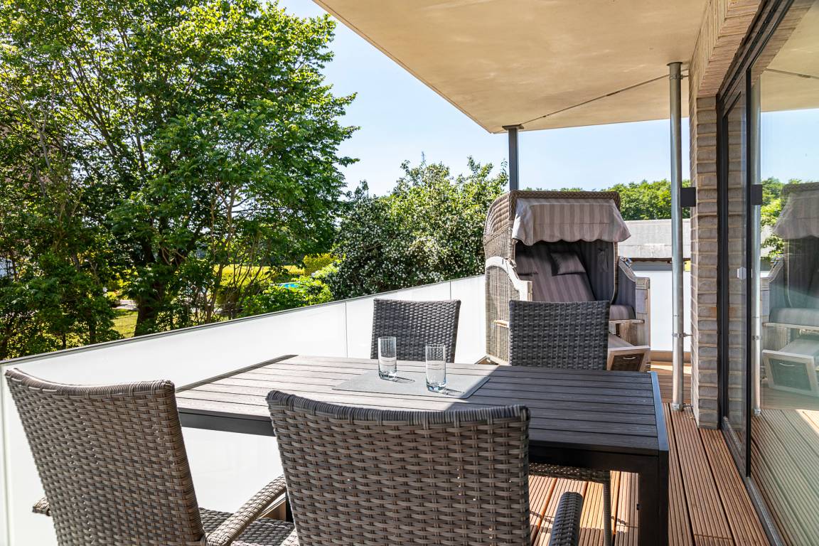 Diese 2-Zimmer-Wohnung besticht durch zeitlos elegante Einrichtung (Design-Pandomo-Fußboden). Das helle Wohnzimmer, mit Flachbild-TV, Schlafsofa (1,40 x 2,00m) und die komplett ausgestattete Küchenzeile eignen sich für einen komfortablen Urlaub. Großzügiges Schlafzimmer mit einem Boxspringbett (1,80 x 2,00m), durchgehende Matratze (der Firma Jensen), einem Kleiderschrank, Kommode und TV. Das Bad ist mit einer bodengleichen Dusche / Regendusche sowie einem Handtuchheizkörper ausgestattet. Großer, halb umlaufender Balkon nach Südwesten, mit seitlichem Ostseeblick sowie weitem Blick ins Grüne – hier genießen Sie die Mittags- und Nachmittagssonne bis zum Abend. Gartenmöbel sowie ein Strandkorb werden Sie hier zum Lesen oder einfach nur zum Träumen einladen. Zur komfortablen und sicheren Unterbringung Ihres PKWs steht Ihnen ein Außenstellplatz direkt am Haus zur Verfügung. Ebenso im Haus ein Gemeinschaftsraum mit Waschmaschine und Trockner, die über einen Münzzähler zu bedienen sind. Auch Fahrräder können sicher im abschließbaren Fahrradraum untergestellt werden
