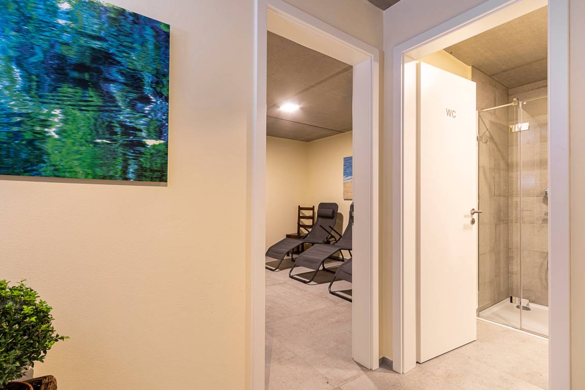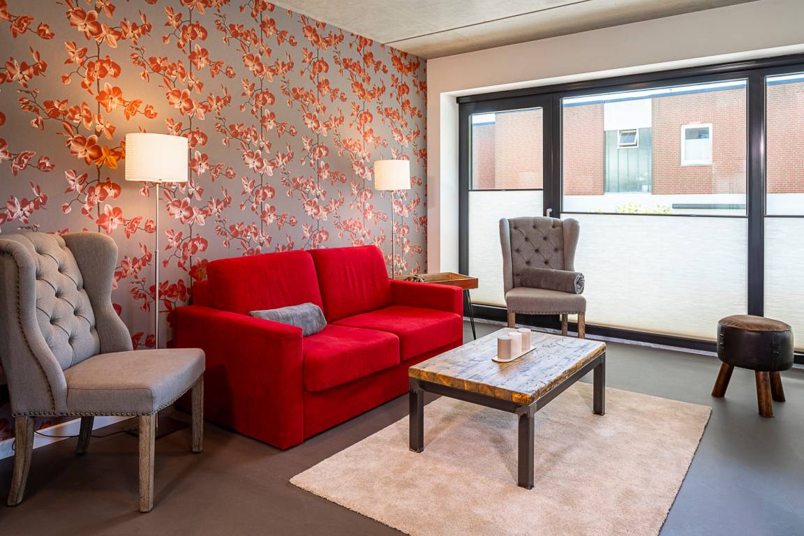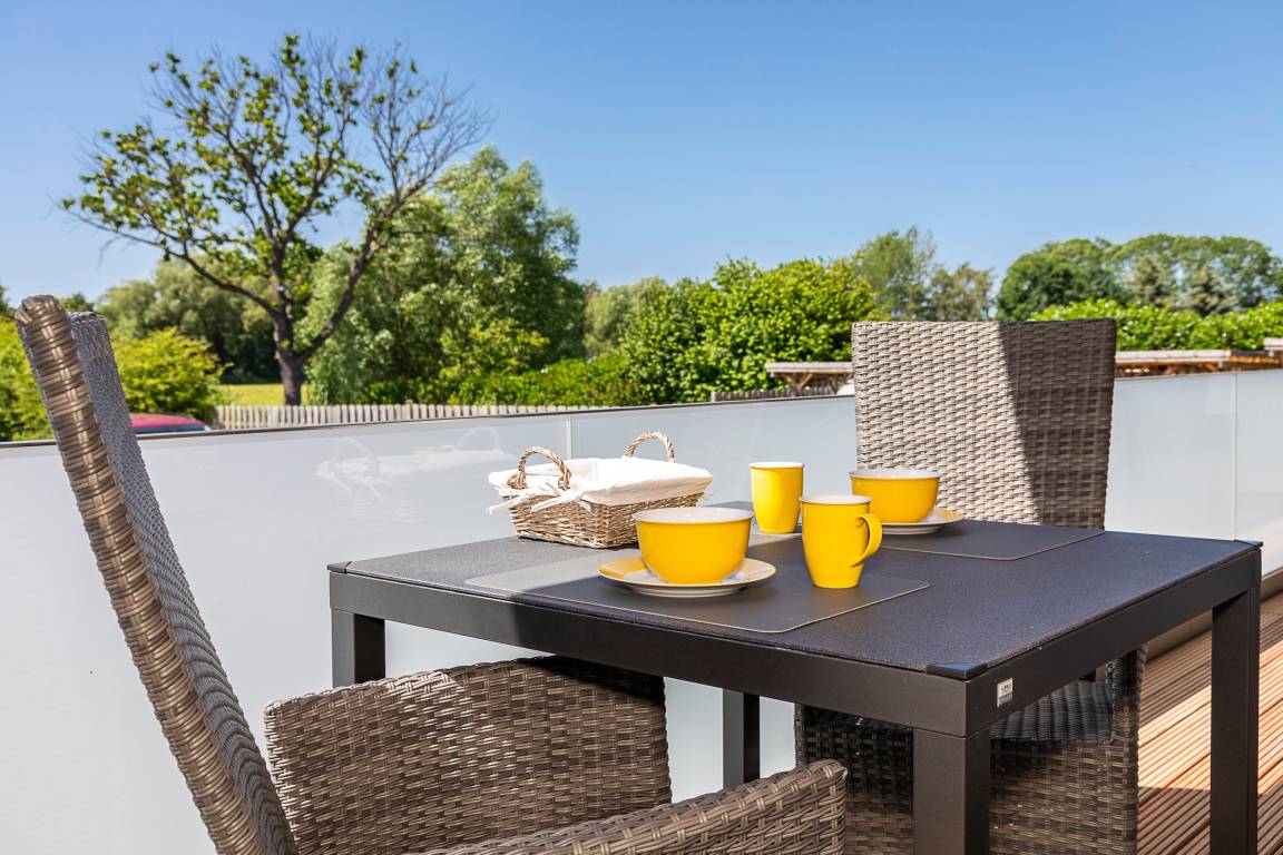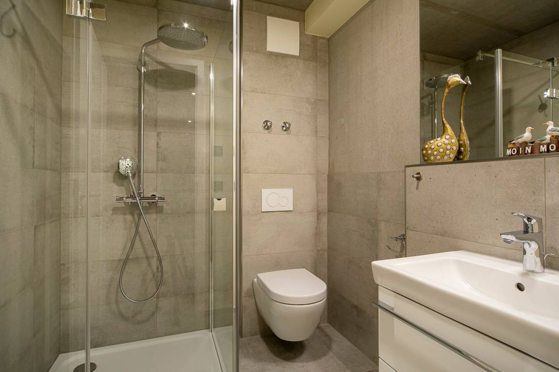 Diese 2-Zimmer-Wohnung besticht durch zeitlos elegante Einrichtung (Design-Pandomo-Fußboden). Das helle Wohnzimmer, mit Flachbild-TV, Schlafsofa (1,40 x 2,00m) und die komplett ausgestattete Küchenzeile eignen sich für einen komfortablen Urlaub. Großzügiges Schlafzimmer mit einem Boxspringbett (1,80 x 2,00m), durchgehende Matratze (der Firma Jensen), einem Kleiderschrank, Kommode und TV. Das Bad ist mit einer bodengleichen Dusche / Regendusche sowie einem Handtuchheizkörper ausgestattet. Großer, halb umlaufender Balkon nach Südwesten, mit seitlichem Ostseeblick sowie weitem Blick ins Grüne – hier genießen Sie die Mittags- und Nachmittagssonne bis zum Abend. Gartenmöbel sowie ein Strandkorb werden Sie hier zum Lesen oder einfach nur zum Träumen einladen. Zur komfortablen und sicheren Unterbringung Ihres PKWs steht Ihnen ein Außenstellplatz direkt am Haus zur Verfügung. Ebenso im Haus ein Gemeinschaftsraum mit Waschmaschine und Trockner, die über einen Münzzähler zu bedienen sind. Auch Fahrräder können sicher im abschließbaren Fahrradraum untergestellt werden