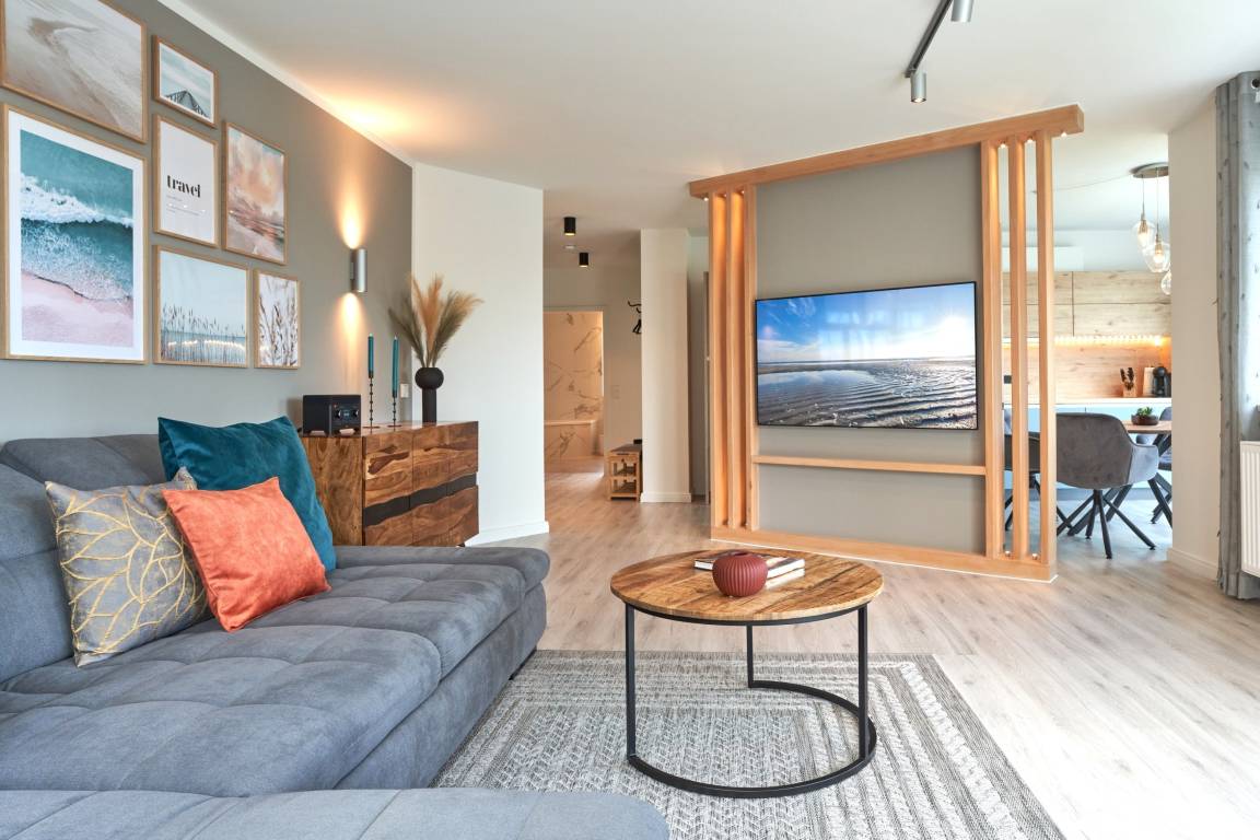 "At Sea" Traumwohnung - für bis zu vier Personen. Sehr schöne sowie mit viel Liebe eingerichtete und anspruchsvolle 3-Zimmer-Wohnung, ca. 92 m², 2 Bäder. Die Wohnung liegt im 1. OG in der Seestraße 35, Süd-Ost-Balkon.