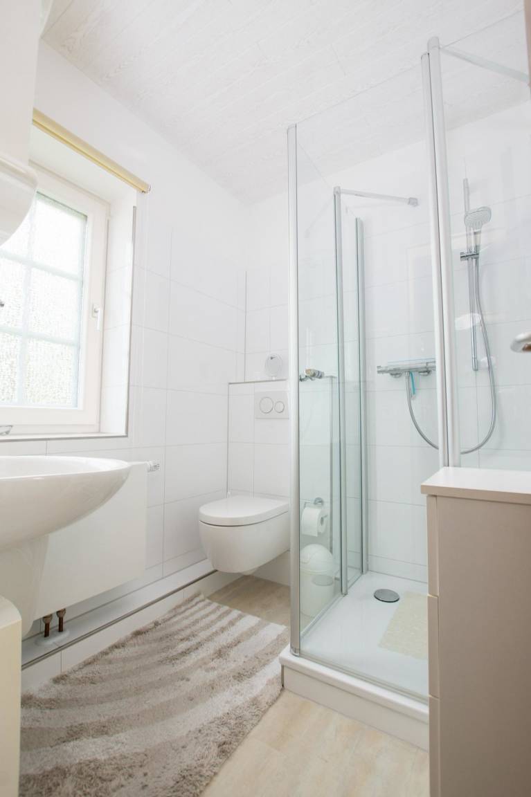 Der Schlafraum umfasst ein Doppelbett (140 x 200) und einen Kleiderschrank. Ein modernes Badezimmer mit Dusche, Waschtisch und WC rundet das Angebot ab. Nichtraucherwohnung, kleine Hunde sind auf Anfrage erlaubt. Ein kostenloser PKW-Stellplatz ist vorhanden.