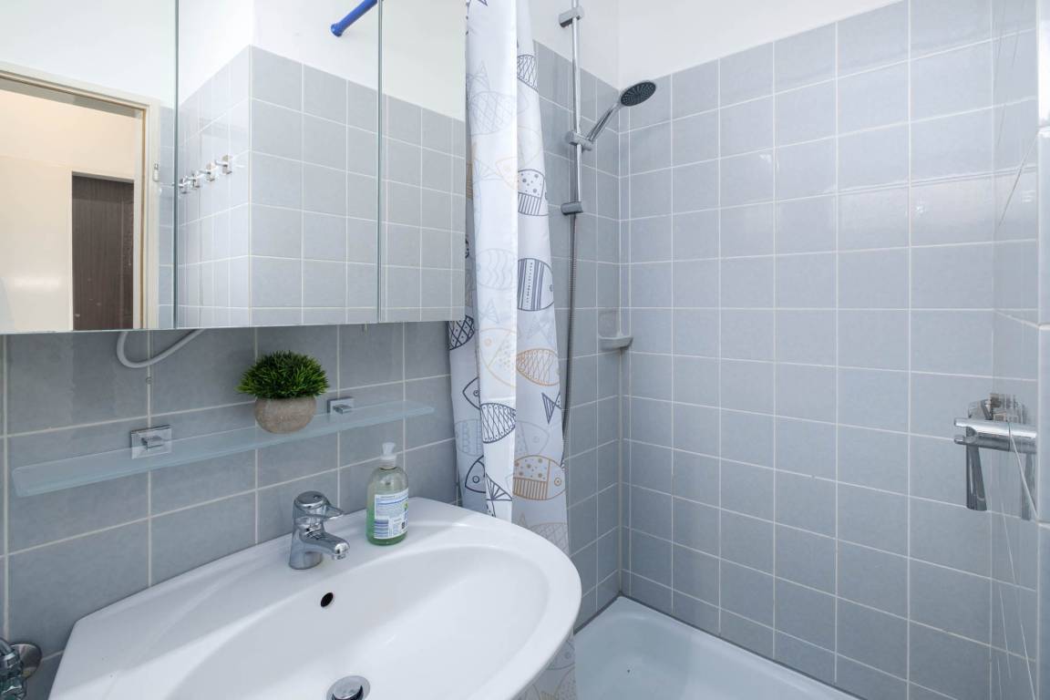 Das Badezimmer bietet Ihnen eine Dusche sowie ein WC.