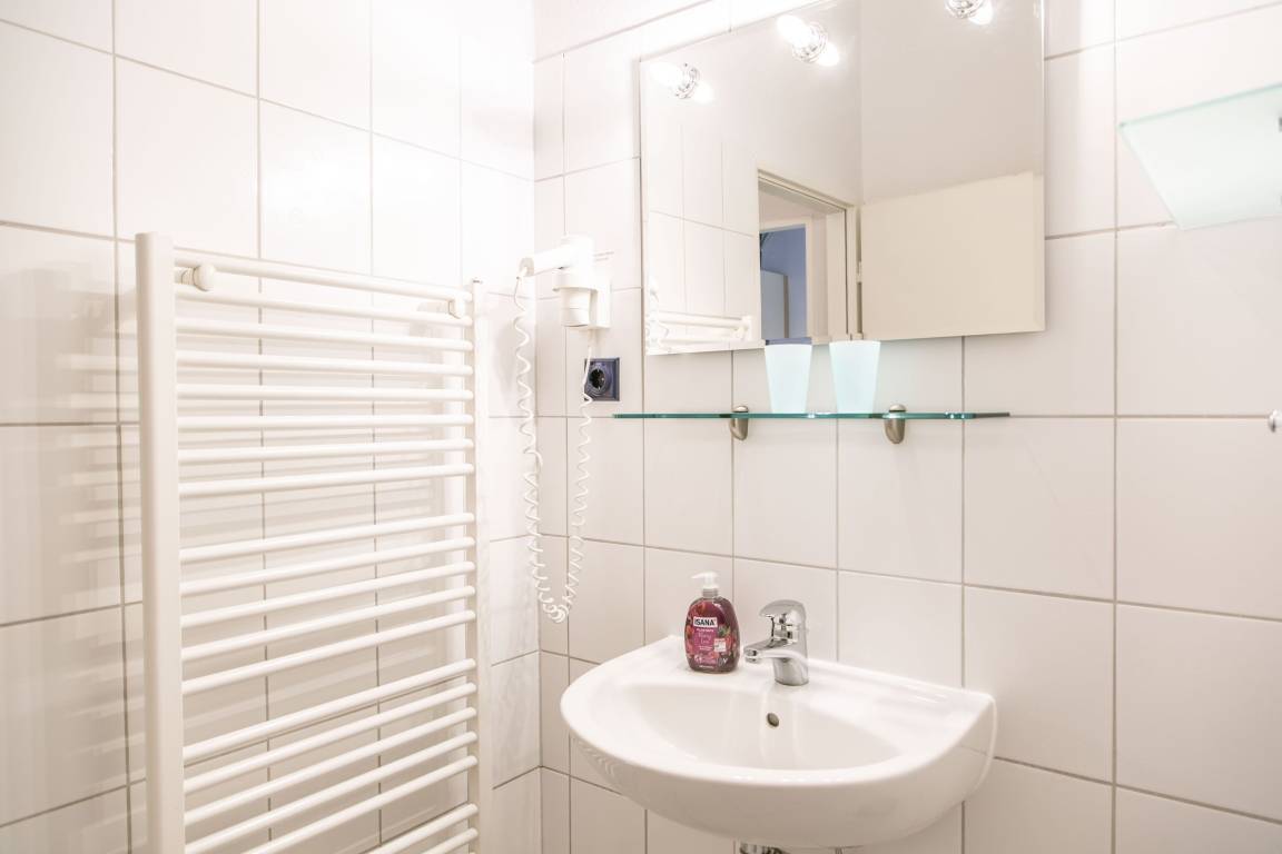 Die Ausstattung umfasst unter anderem einen Flachbildfernseher, sowie kostenfreien Internetzugang, ein Radio und Föhn im Badezimmer.