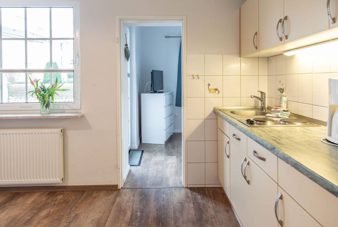 Für die Zubereitung von Kaffee steht eine Filterkaffeemaschine bereit und für die schnelle Mahlzeit zwischendurch eine Mikrowelle. Die separate Küche bietet Ihnen alles Nötige, um sich selbst zu versorgen.