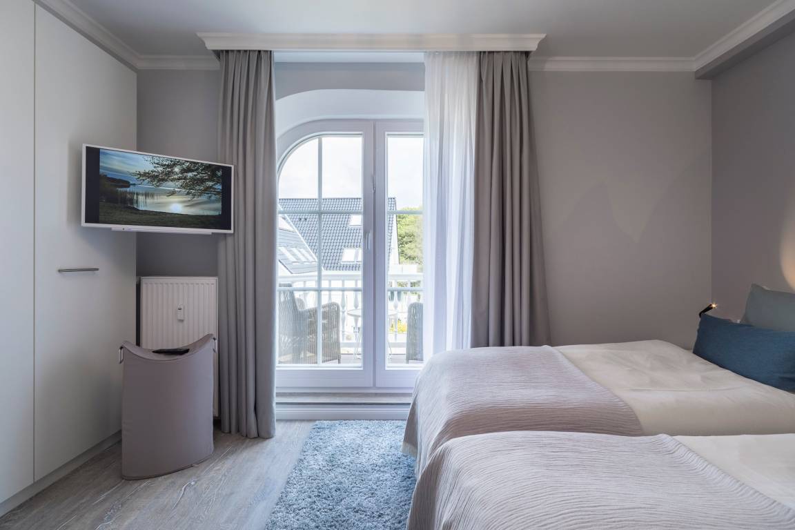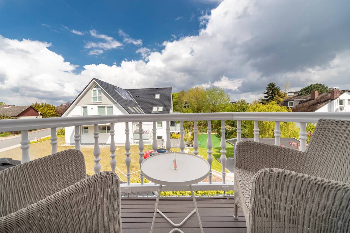 Eine 65 m² große 2-Zimmer-Ferienwohnung mit zwei Balkonen, Duschbad, PKW-Stellplatz und Fahrradgarage
