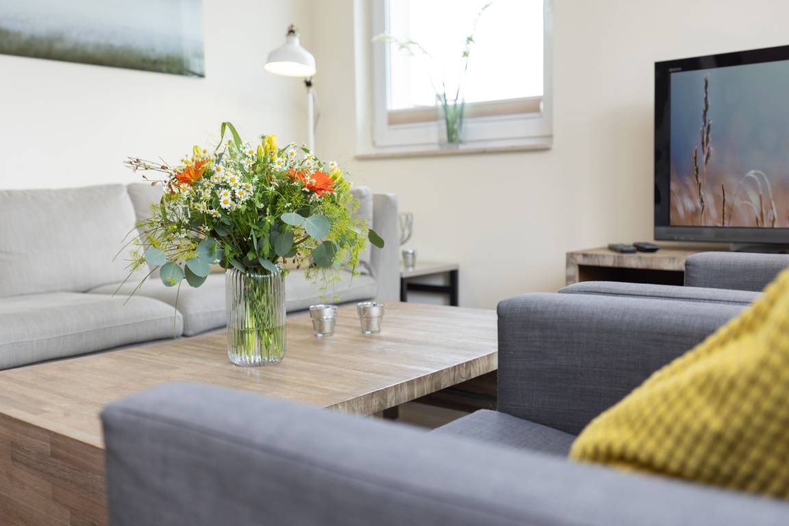 Dieses komfortable 4-Zimmer-Appartement erstreckt sich über 2 Etagen, hat ca. 90 m² und bietet Platz für bis zu 6 Personen. Es ist modern, geschmackvoll und stilsicher eingerichtet.