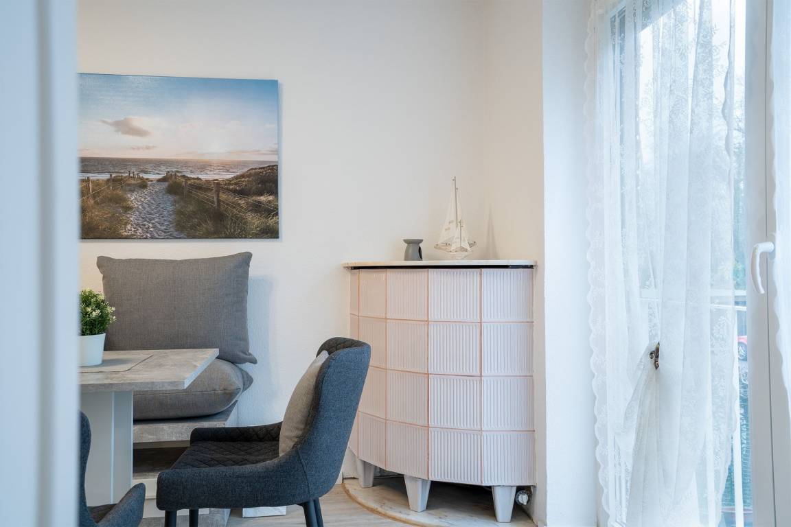 Freuen Sie sich auf Ihre 25 m² große 1-Zimmerwohnung Lüttje Doens (übersetzt: kleine Stube), die 2 Personen beherbergen kann, und sich im Hochparterre nur ca. 1500 m vom Ostseestrand entfernt befindet.