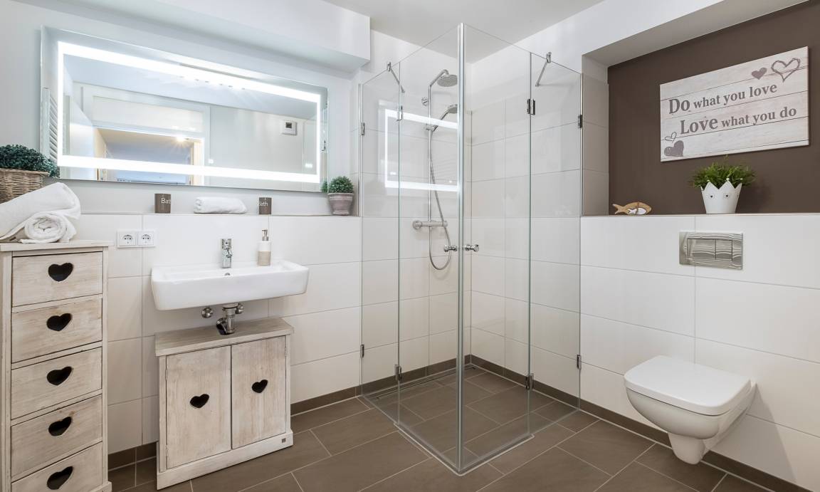 Diese Ferienwohnung bietet Ihnen einen gemütlichen Wohn-Essbereich, mit einer Couch sowie einem XXL-Sessel. Neben dem Flachbildfernseher steht Ihnen eine Stereoanlage zur Verfügung. Kostenloses WLAN ist selbstverständlich. Die offene Küche mit einem sehr schönen Esstresen ist komplett ausgestattet und lässt keine Wünsche offen. Neben der Filterkaffeemaschine steht Ihnen hier eine zusätzliche Kaffeepadmaschine zur Verfügung. Die Schlafzimmer sind je mit einem geräumigen Schrank, einem Boxspringbett (1,80 x 2,00m ) und einem Flachbildfernseher ausgestattet. Zur Verdunkelung sind elektrische Außenrollläden angebracht. Das große Duschbad verfügt über eine bodentiefe Dusche sowie einen großen Spiegel. Neben der Fußbodenheizung ist hier ein zusätzlicher Handtuchheizkörper angebracht. Ein zur Wohnung gehörender Tiefgaragenstellplatz sorgt für eine sichere Unterbringung Ihres Autos.