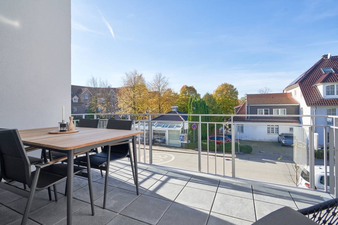 Lille Hus – sehr hochwertige und anspruchsvolle 2-Zimmerwohnung, ca. 55 m², im 1.OG. In der Villa Scharbeutz, schöner Westbalkon. Elektrische Außenrollläden, Kfz-Außenstellplatz. Fahrstuhl