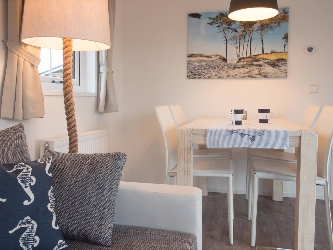 Schöne Ferienhäuser im skandinavischen Strandhaus-Stil mit einer maritimen Einrichtung, hellen Wohnräumen und großen Fensterfronten. Alle Ferienhäuser verfügen über einen W-Lan-Internetzugang, Sat-TV, einem Zimmer-Safe, eine Gas-Heizung. Wir haben Nichtraucherhäuser, mit Terrassen mit Sitzmöbeln einem Grill, sowie einem Strandkorb am Haus. Pro Ferienhaus wird 1x Parkplatz reserviert.