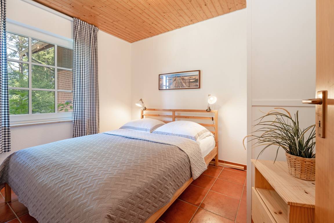 Schlafzimmer 1(EG): Doppelbett (2x 80x190 cm), Kleiderschrank, Verdunkelung: Vorhänge
