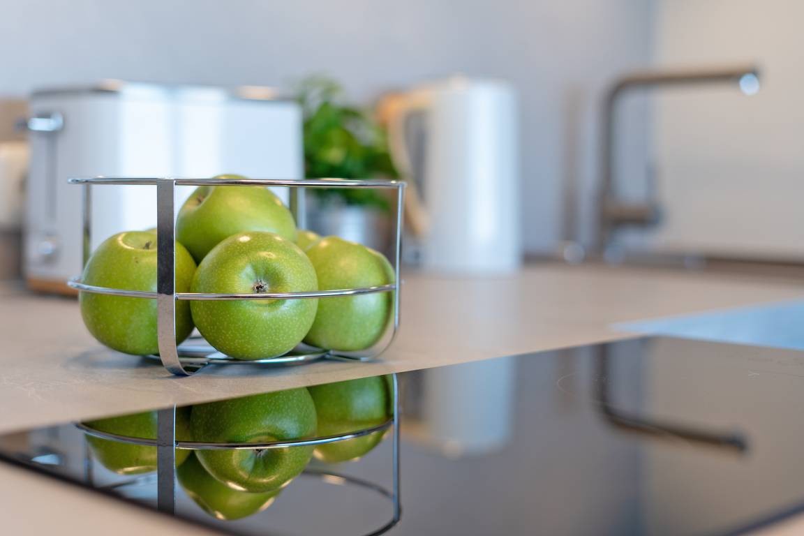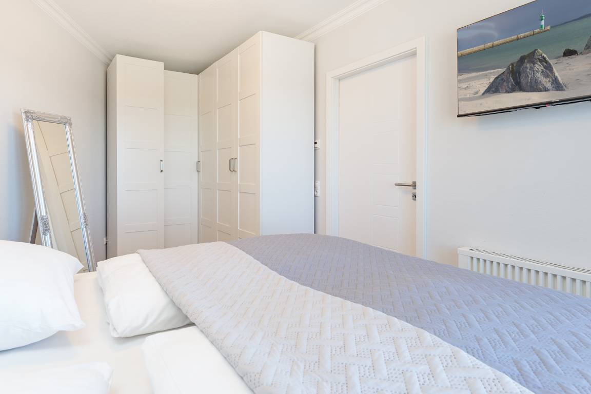 Im Schlafzimmer befindet sich ein hochwertiges Doppelbett (180x200 cm). Der Wohnraum mit der gemütlichen offenen Küche im amerikanischen Stil (Küchenzeile mit Tresen und Sitzmöglichkeiten für 4 Personen) bietet allen Komfort, den man sich im Urlaub wünscht! Auf der hochwertigen Sitzlandschaft mit Schlaffunktion (140x200 cm) steht eine weitere Übernachtungsmöglichkeit zur Verfügung. Die moderne Küchenzeile ist ausgestattet mit: Cerankochfeld (2 Kochplatten), Kühlschrank mit Gefrierfach, Geschirrspülmaschine, Wasserkocher und Kaffeemaschine (Kapselmaschine/Nespresso). Das komfortable Duschbad ist hell und modern gestaltet und sorgt mit Ausstattungsdetails wie einer geräumigen Eckdusche und Handtuchheizung für gute Laune am Morgen. Das Wohnzimmer ist mit einem LED TV ausgestattet. Auf dem Balkon kann man es sich in den Lounge-Sesseln gemütlich machen.