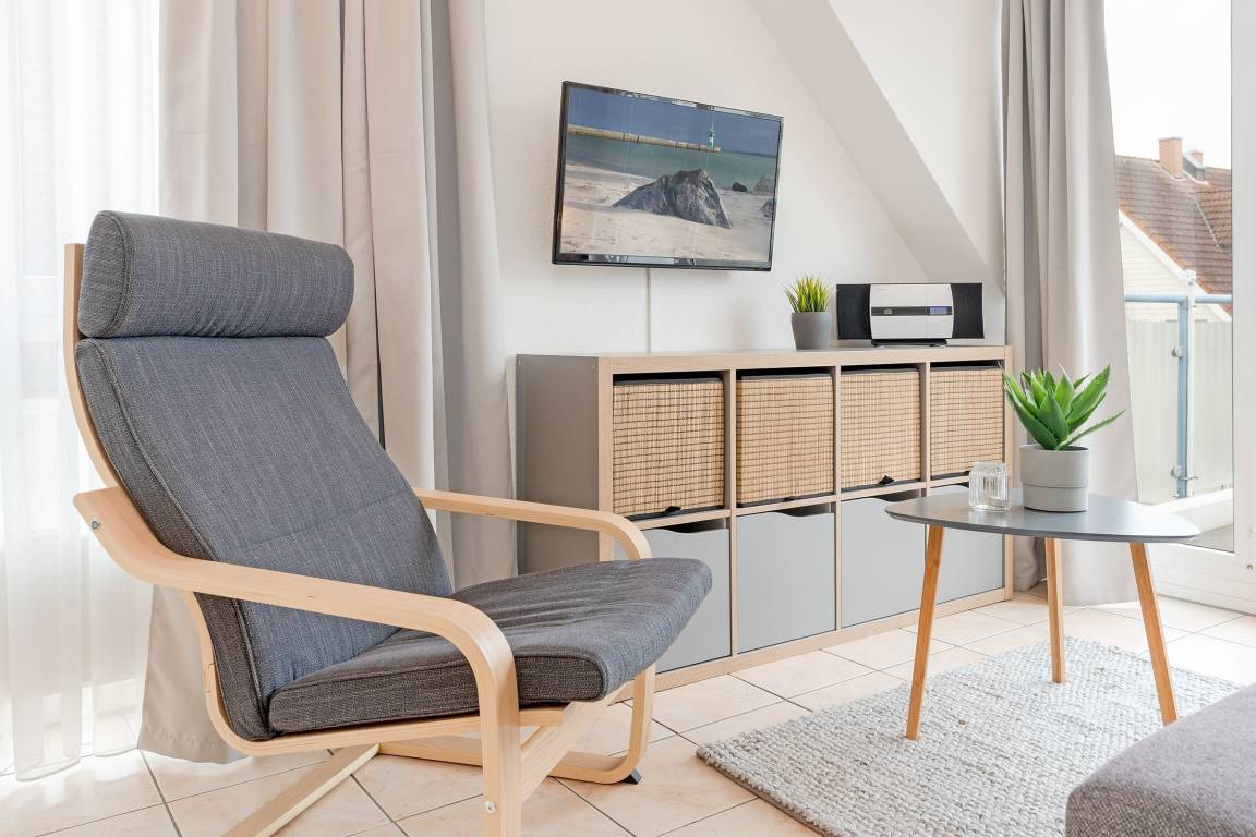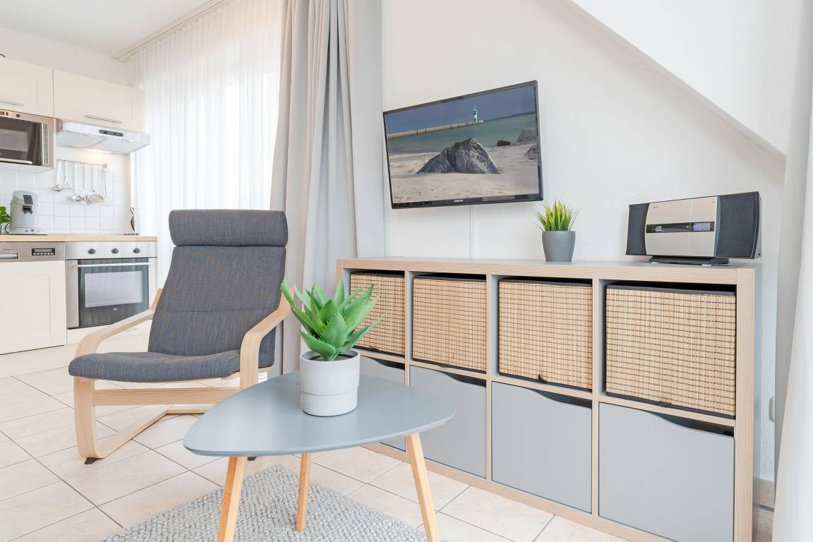 „Die Wohnung ist sehr liebevoll eingerichtet. Wir haben uns sehr wohl gefühlt. Der Weg zum Strandkorb ist sehr kurz. Aufgrund der Lage (Sonnenseite) heizt sich die Wohnung an heißen Tagen schnell auf. Auf jeden Fall ist die Wohnung weiter zu empfehlen.“