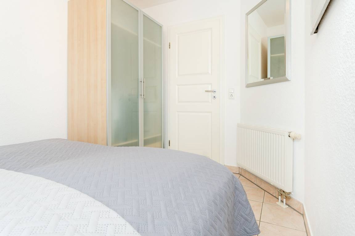 „Die Wohnung befindet sich in einer Seitenstraße, ruhige Lage. Das Haus hat einen Aufzug. Zum Bäcker und Strand mit eigenem Strandkorb 2-3 Gehminuten. Das Schlafzimmer ist sehr klein und eher für schlanke Leute geeignet. Ansonsten ist die Wohnung für zwei Personen perfekt.“