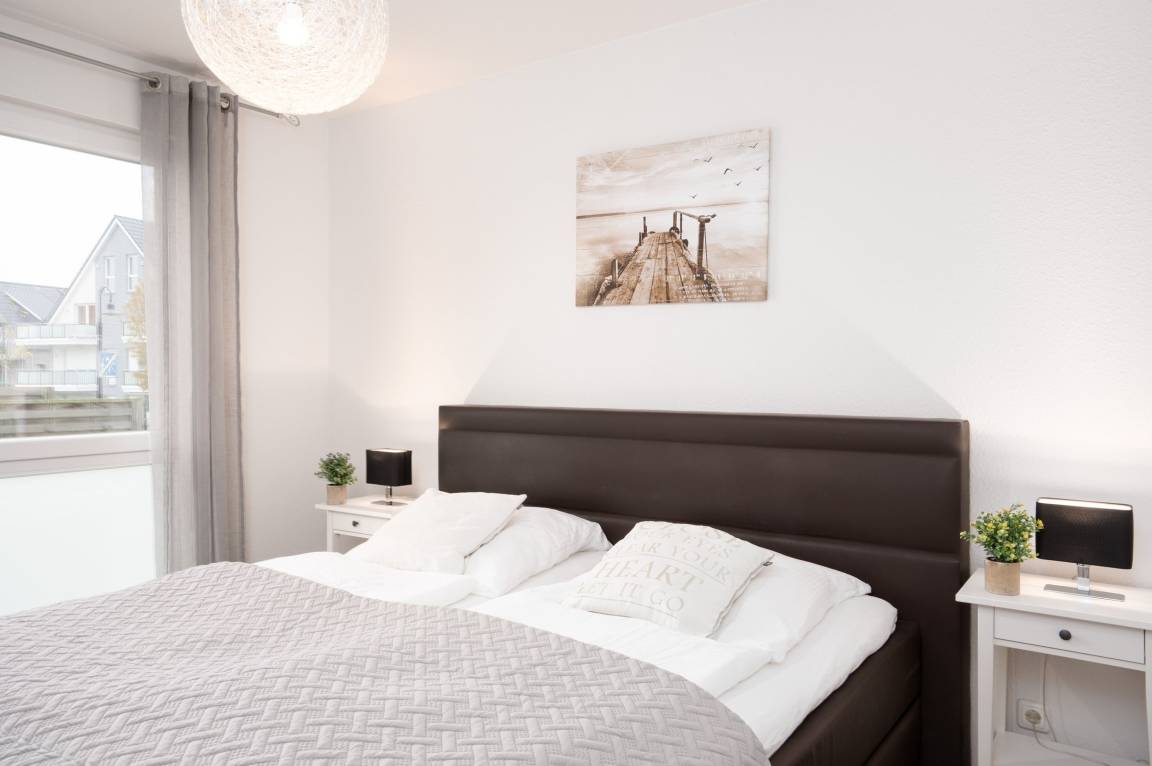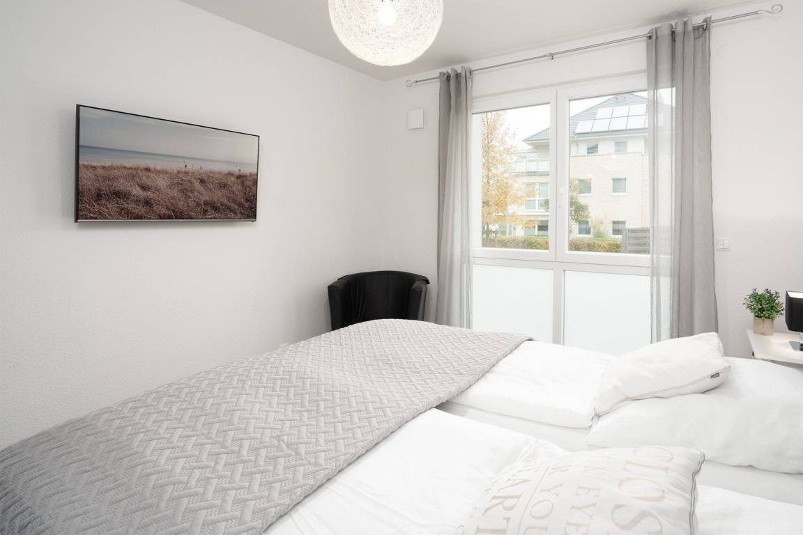 „Eine schöne, gemütliche und moderne Wohnung mit separatem Eingang und Tiefgaragenstellplatz. Zwei Schlafzimmer mit vernünftigen Betten, zwei Bäder mit Dusche und eine zweckmäßiger Küche. Zum Strand und sind es keine fünf Minuten und auch Gastronomie ist direkt um die Ecke.“