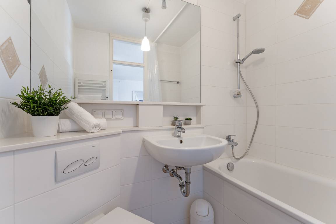 „Wir waren zufrieden mit der zentralen Lage der Wohnung. Betten und Schlafsofa waren bequem. Die Wohnung könnte man noch aufwerten, wenn sie einen Geschirrspüler hätte, man die Markise nutzen könnte und die Fenster im Wohnzimmer eine Verdunklung hätten. Staumöglichkeiten im Bad wären auch schön.“