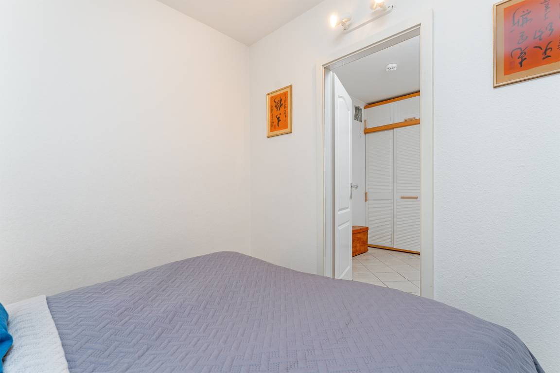 Schlafzimmer: 1 Doppelbett (2x 80x200 cm), innenliegend mit Oberlicht zum Wohnzimmer, keine Verdunkelung, kein Platz für Kinderreisebett