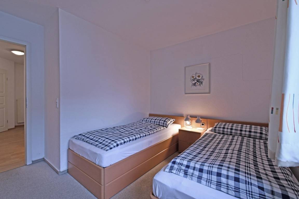 Das ca. 60 m² große 2-Zimmer-Komfort-Apartment befindet sich im 2. Obergeschoss und ist bequem mit einem Lift erreichbar. Der lichtdurchflutete Wohn-Essbereich ist mit Laminatboden ausgelegt und bietet ein umwandelbares Polstersofa für zwei Personen, einen Sessel, einen Couchtisch sowie eine moderne Einbauküche mit Spülmaschine und einem Essplatz für vier Personen. Der separate Schlafraum ist mit zwei Einzelbetten, einem Nachttisch und einem Kleiderschrank ausgestattet. Ein modernes Duschbad schließt sich dem Flur an, in dem sich auch eine Garderobe befindet. Rauchen und Haustiere sind in diesem Apartment nicht gestattet. Ein PKW-Einzel-Stellplatz in der Tiefgarage ist im Preis inbegriffen. Kostenfreies WLAN steht zur Verfügung, jedoch kann keine Gewährleistung bei technischen Problemen des Internetzugangs übernommen werden.
