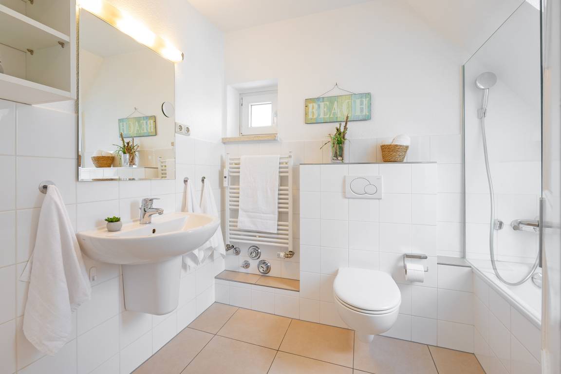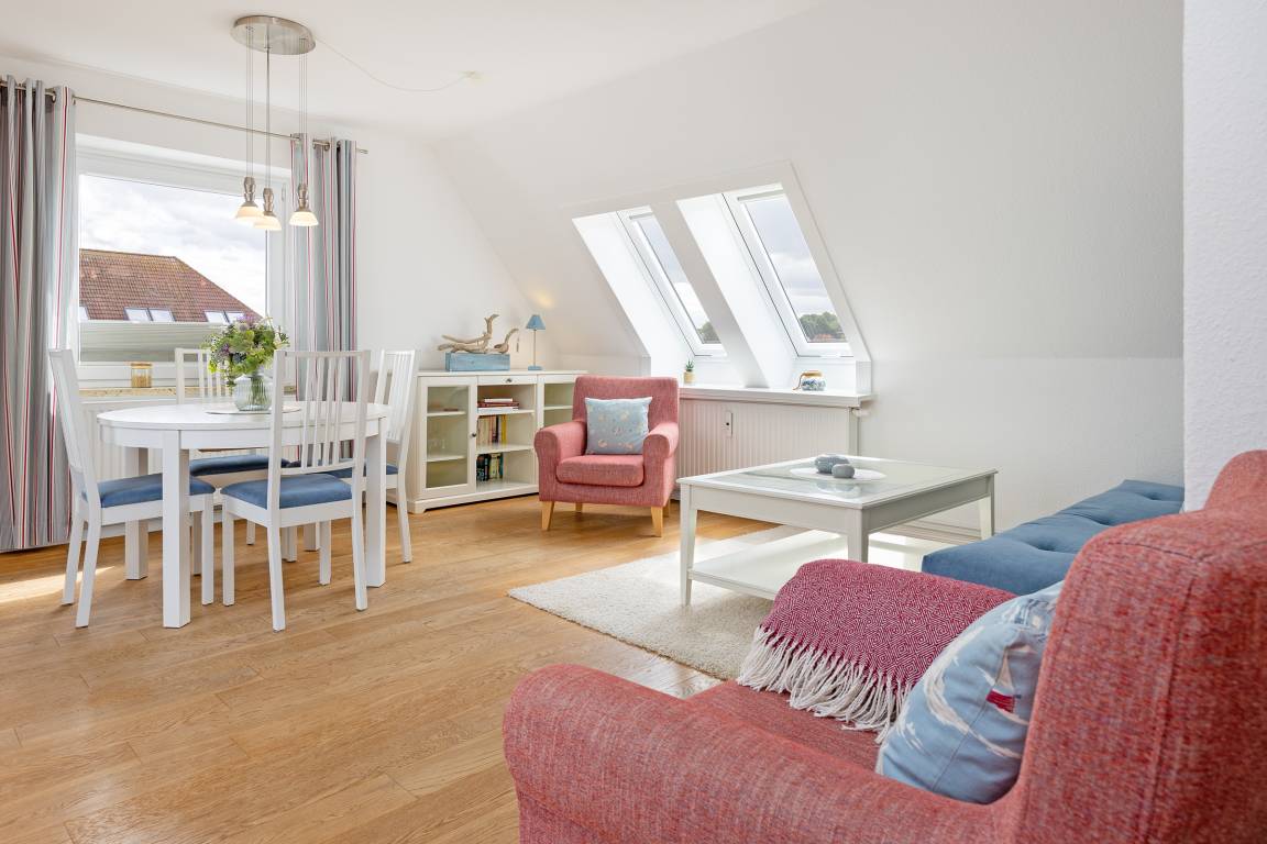 Sie erwartet eine nordisch maritime und modern eingerichtete, strandnahe ca. 80 m² große 3- Zimmer Ferienwohnung für