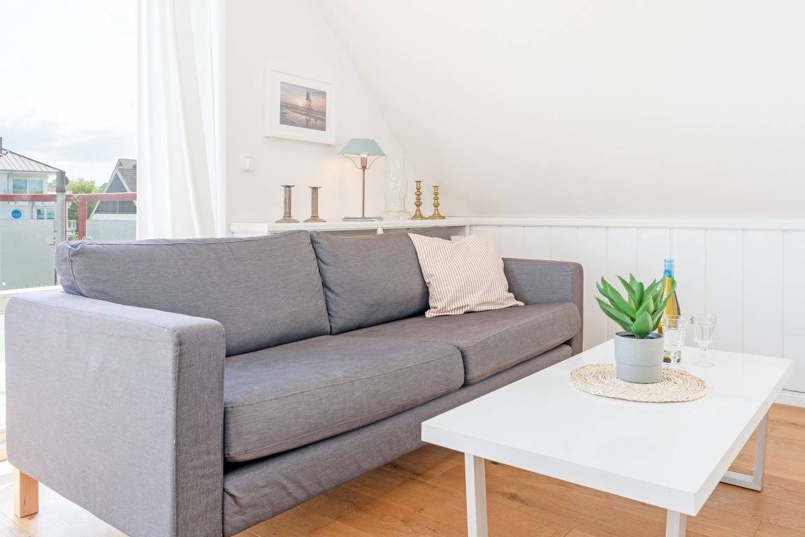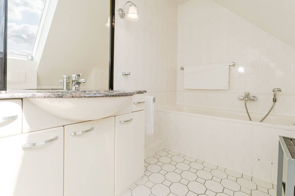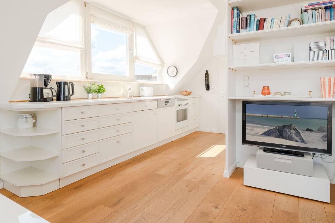 Es erwartet Sie ein großzügig geschnittenes helles Appartement im Dachgeschoss mit Studio-Charakter. Warme Farben und ein zeitloser Einrichtungsstil im geschmackvollen Landhausstil sorgen für entspannte Wohlfühlatmosphäre.