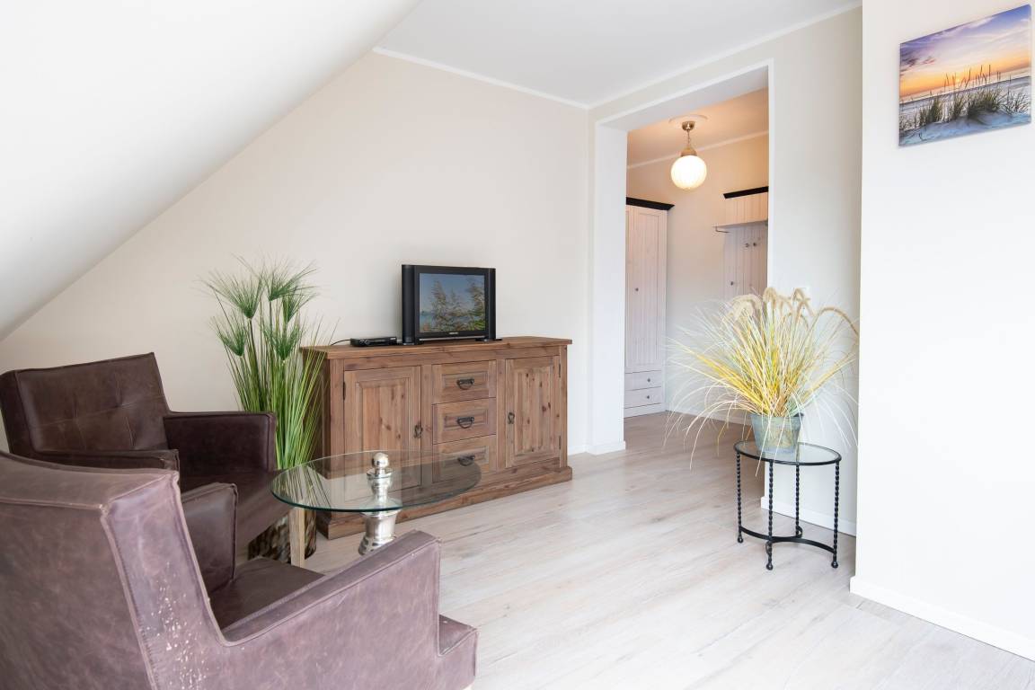 Diese charmante Ferienwohnung im zeitlos-modernen Landhausstil befindet sich im 1. und 2. OG des idyllisch gelegenen Landhauses. Die Wohnfläche des Feriendomizils umfasst ca. 105 m², erstreckt sich über 2 Ebenen und offeriert 3 Zimmer, davon ein helles, offenes Wohnzimmer und 2 separate Schlafzimmer.