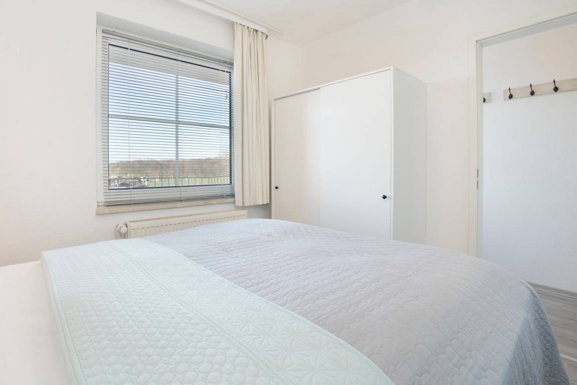 Schlafzimmer: 1 Doppelbett (2x 80x200 cm), Kleiderschrank, Verdunkelung (Jalousie + Vorhang)