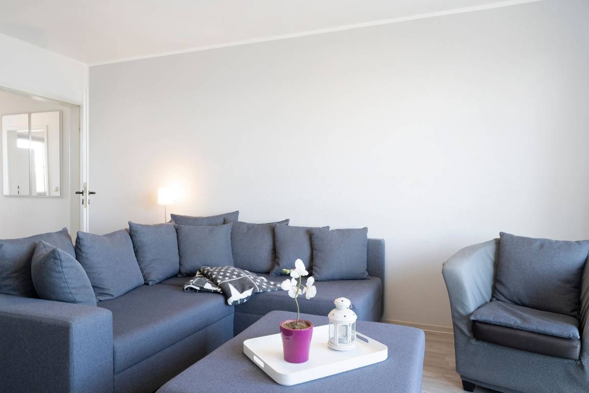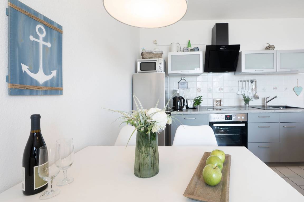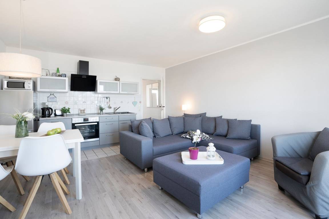In der 1. Etage bietet diese charmante Ferienwohnung mit insgesamt 2 Zimmern, einer Wohnfläche von ca. 49 m², Balkon, 1 separates Schlafzimmer mit einem Boxspringbett (durchgehende Matratze 160x200 cm) und ein Wohnzimmer mit einer gemütlichen Wohnlandschaft. Auf der Liegefläche von 170x180cm ist eine weitere Schlafmöglichkeit vorhanden. Die im Raum integrierte Küche ist voll ausgestattet. Mahlzeiten lassen sich zubereiten ohne von der Familie getrennt zu sein - Ausreichend Platz für bis zu 2 Erwachsene und 2 Kinder ist vorhanden.