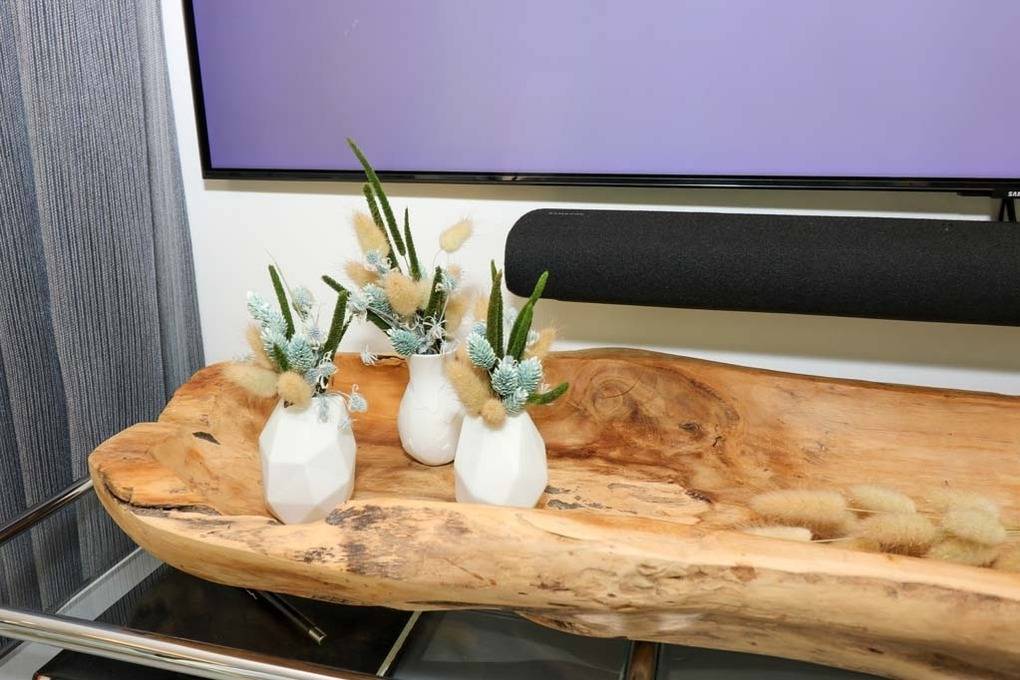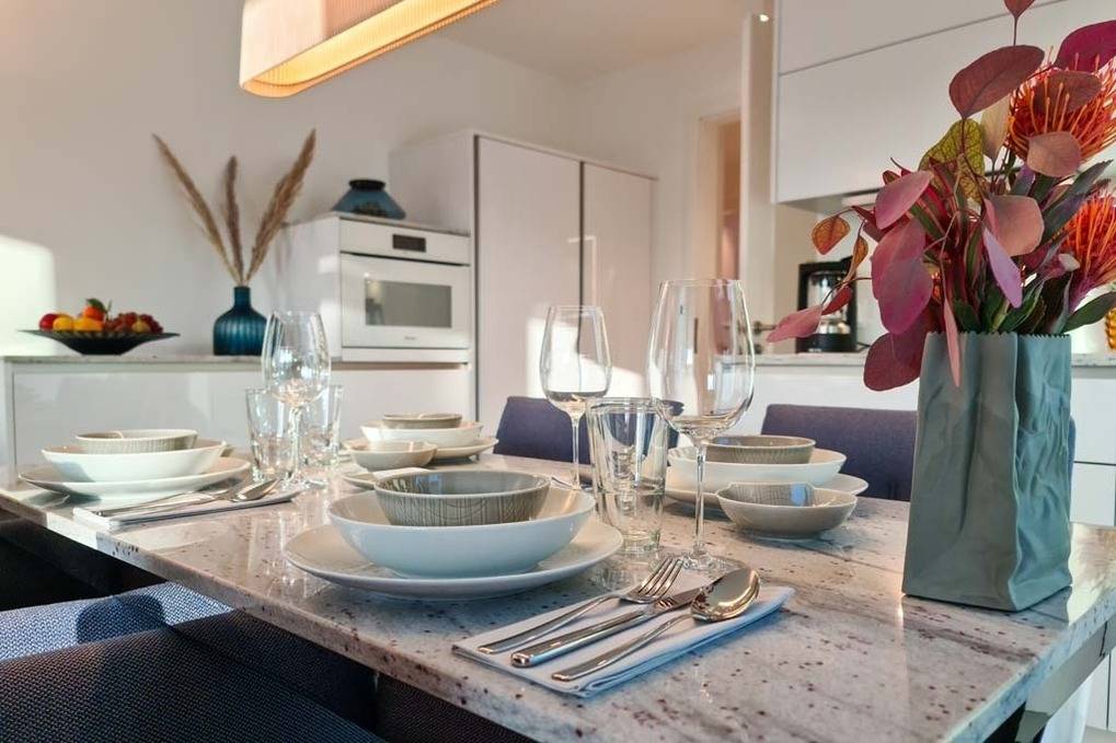 Wohn-Ess-Bereich: Genießen Sie kulinarische Erlebnisse in der hochwertigen Warendorf-Küche mit Miele-Einbaugeräten, einer Nespresso-Maschine sowie hochwertigem Rosenthal-Porzellan. Es erwarten Sie Design-Klassiker von USM Haller (Esstisch und TV-Board) und COR (Ledersofa, Lounge-Chair, Esstisch-Stühle mit superbequemer Polsterung und Couchtische). Ein Samsung 65″-Smart-TV inkl. Soundbar mit LAN und kostenloses, unbegrenztes Highspeed-WLAN stehen Ihnen für Entertainment und digitales Erleben zur Verfügung. Zusätzlich steht Ihnen ein BOSE-Wave-Soundsystem für WLAN-Radio und CD zur Verfügung. Gerne können Sie Ihr Smartphone sowohl mit dem Samsung-Smart-TV/Soundbar als auch mit dem BOSE-Wave-Soundsystem verbinden und Ihre Lieblingsmusik hören.