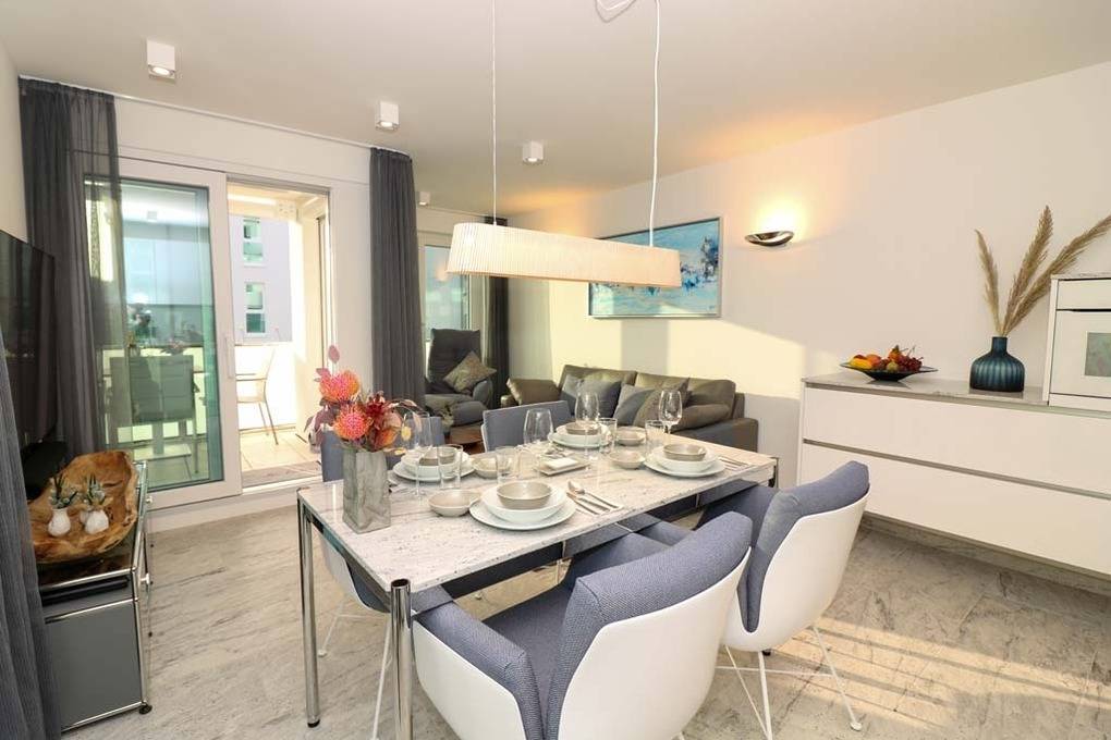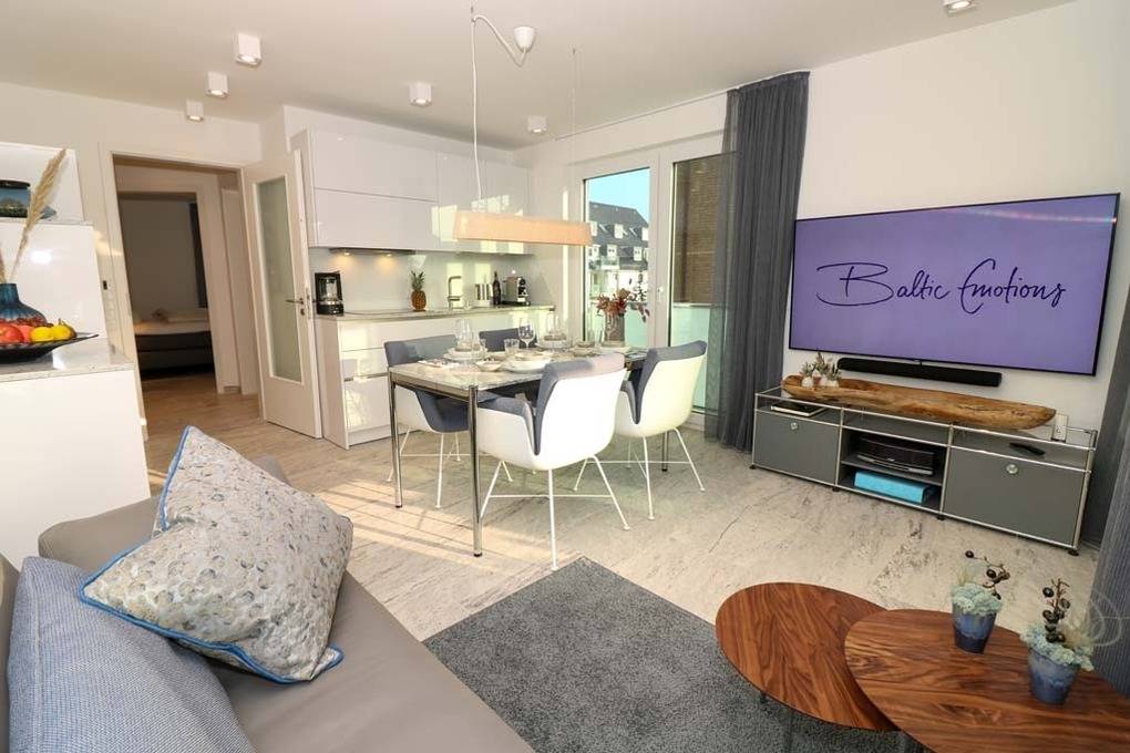 Eine stylische Design-Wohnung, auch perfekt für Ihren Familienurlaub, dank hochwertigem Kinderhochstuhl, Kindergeschirr und -besteck und Steckdosen mit integrierter Kindersicherung. Der sonnige und überdachte Südbalkon, Fußbodenheizung, Außenrollläden, Natursteinfliesen und Biowandfarbe in der gesamten Wohnung bringen echte „Baltic Emotions". Freuen Sie sich auf Ihr persönliches Willkommensgeschenk, welches alle Ihre Sinne ansprechen wird. Dies alles lässt diese Wohnung auch bei schlechtem Wetter zu einer Ganzjahres-Destination werden. Ihre Fahrräder finden entweder im gemeinschaftlichen Fahrradkeller oder in Ihrem abgeschlossenen Kellerraum Platz.