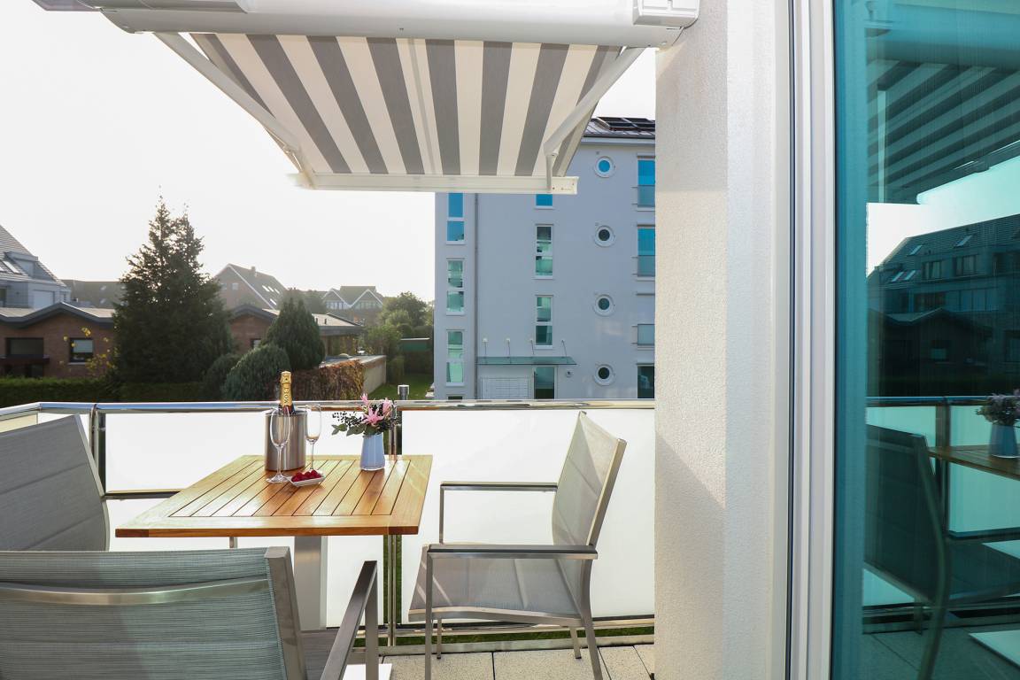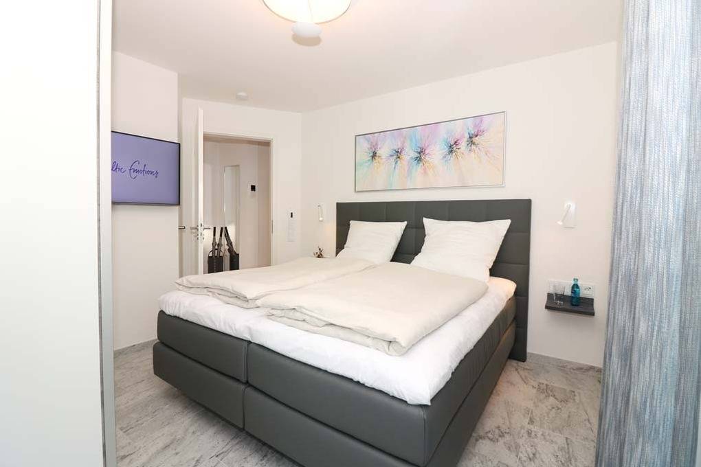 Helle und freundliche 3-Zimmer-Ferienwohnung, ca. 54 m² im 1. OG. Fahrstuhl, überdachter Süd-Balkon, exklusive Designer-Möbel, Wellnessbad mit Regendusche, inkl. Saison-Strandkorb (15.05. – 15.09.) und kostenlosem Highspeed-WLAN, großzügiger Tiefgaragen-Stellplatz (TG-Einfahrt Höhe 2,00 m), mit einer E-Ladestation für Ihr Elektroauto, gegen Gebühr