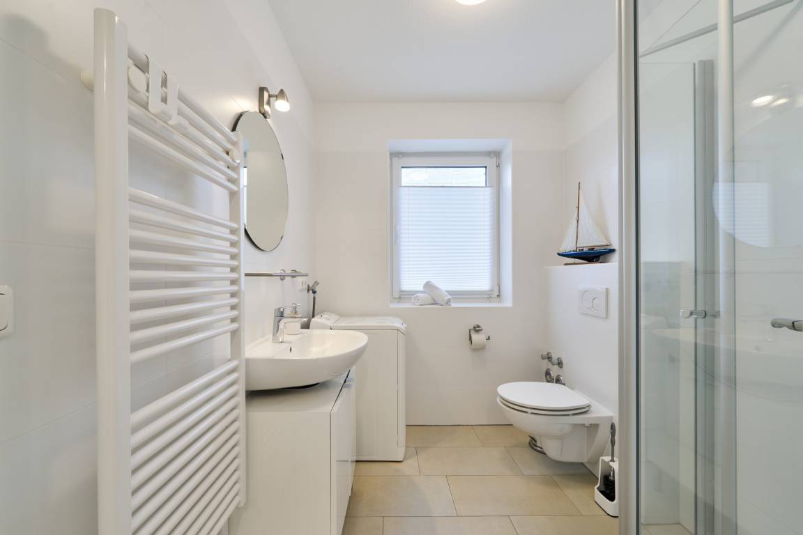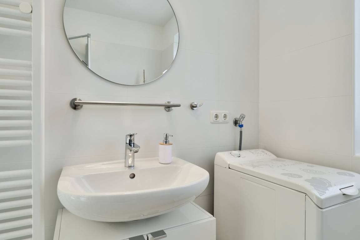 Das Badezimmer ist mit einer Dusche, einer Waschmaschine und Fußbodenheizung ausgestattet. Selbstverständlich steht Ihnen auch in dieser Wohnung kostenloses WLAN zur Verfügung.