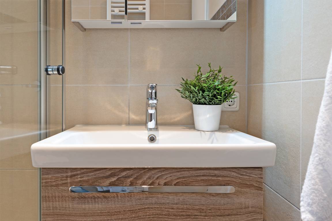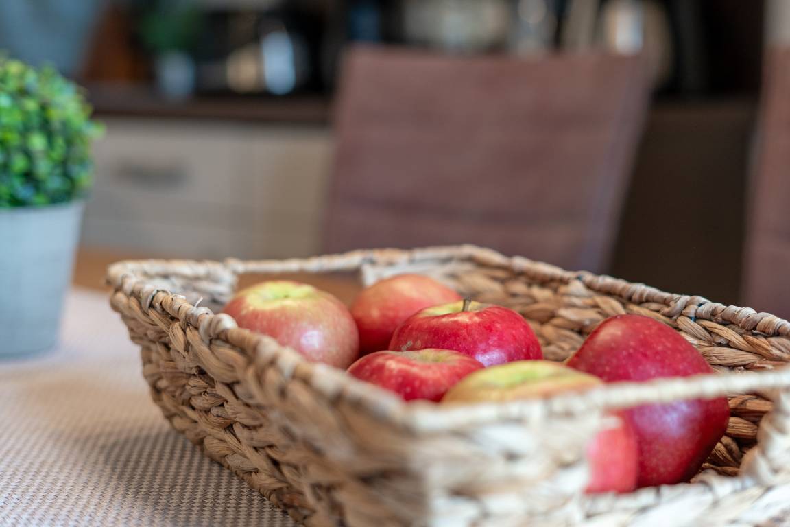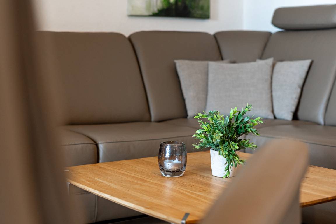 Das Appartement befindet sich in der 2. Etage (Dachgeschoss) und verfügt über einen geschmackvoll eingerichteten Wohn-/Schlafraum mit Flachbildfernseher, DVD-Player, Kombi-Stereoanlage, großer und komfortabler Ledercouch mit Schlaffunktion (120x200 cm) für 2 Personen, Südbalkon/Loggia mit Gartenmöbeln. Die Küchenzeile mit anliegender Essecke ist komplett ausgestattet mit: Backofen, Cerankochfeld, Mikrowelle, Kühlschrank mit Gefrierfach, Kaffeemaschine, Wasserkocher und Toaster. Das Schlafzimmer mit Boxspring-Doppelbett (180x200 cm), Radiowecker sowie 2 geräumigen Kleiderschränken. Ein WLAN-Anschluss ist hier inklusive