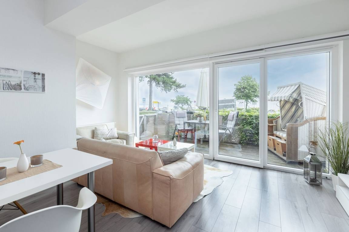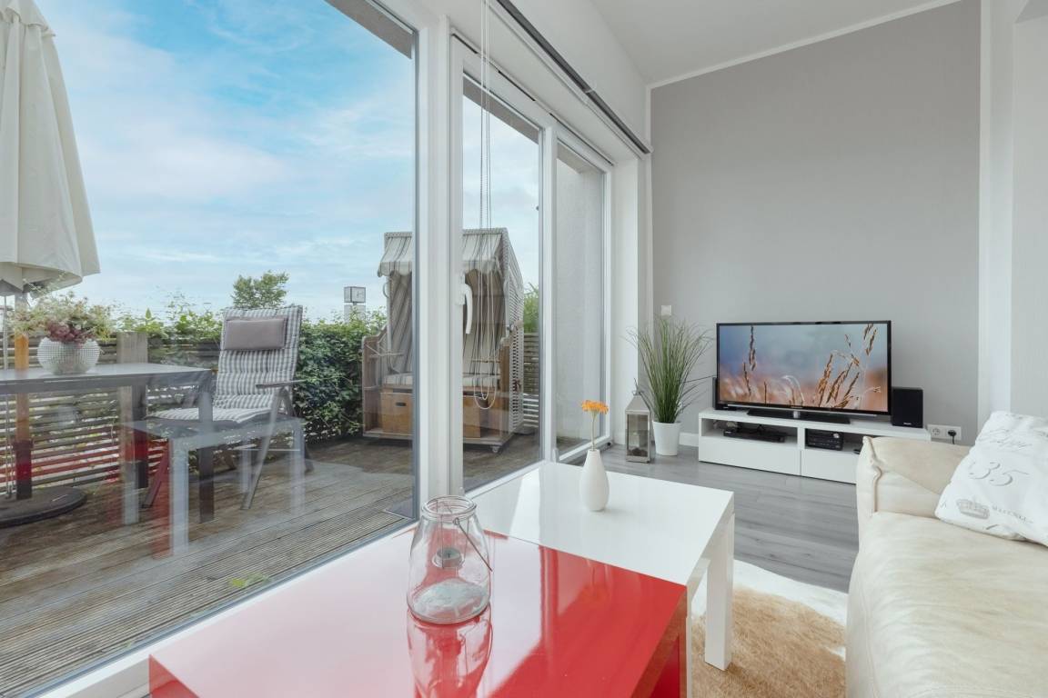 Innen wird Sie sowohl das großzügige Raumangebot als auch die liebevolle und komplette Ausstattung erfreuen. Über das Internet können Sie Ihre Erlebnisse mit den Freunden teilen. Ein großzügiger, heller Wohnraum mit gemütlicher Couch und einer Sitzecke lässt keine Wünsche offen. Eine offene Luxusküche ist rundum ausgestattet. Dort finden Sie alle notwendigen Alltagshelfer für gelungene Kochabende. In Ihrem geräumigen Schlafzimmer erwartet Sie ein Boxspringbett (160x200 cm) mit hochwertiger Matratze, die für Ihren erholsamen Schlaf sorgt. Ein weiterer Flat-Screen-TV sorgt für Unterhaltung. Eine gemütliche Leseecke lädt Sie zum Entspannen ein. Von Ihrem Schlafzimmer gelangen Sie direkt ins Bad mit ebenerdiger Dusche, Sauna, Heizungswärmer und WC. Nicht nur in den kühlen Jahreszeiten tanken Sie wohlige Wärme in der Sauna nach einem ausgiebigen Strandspaziergang.