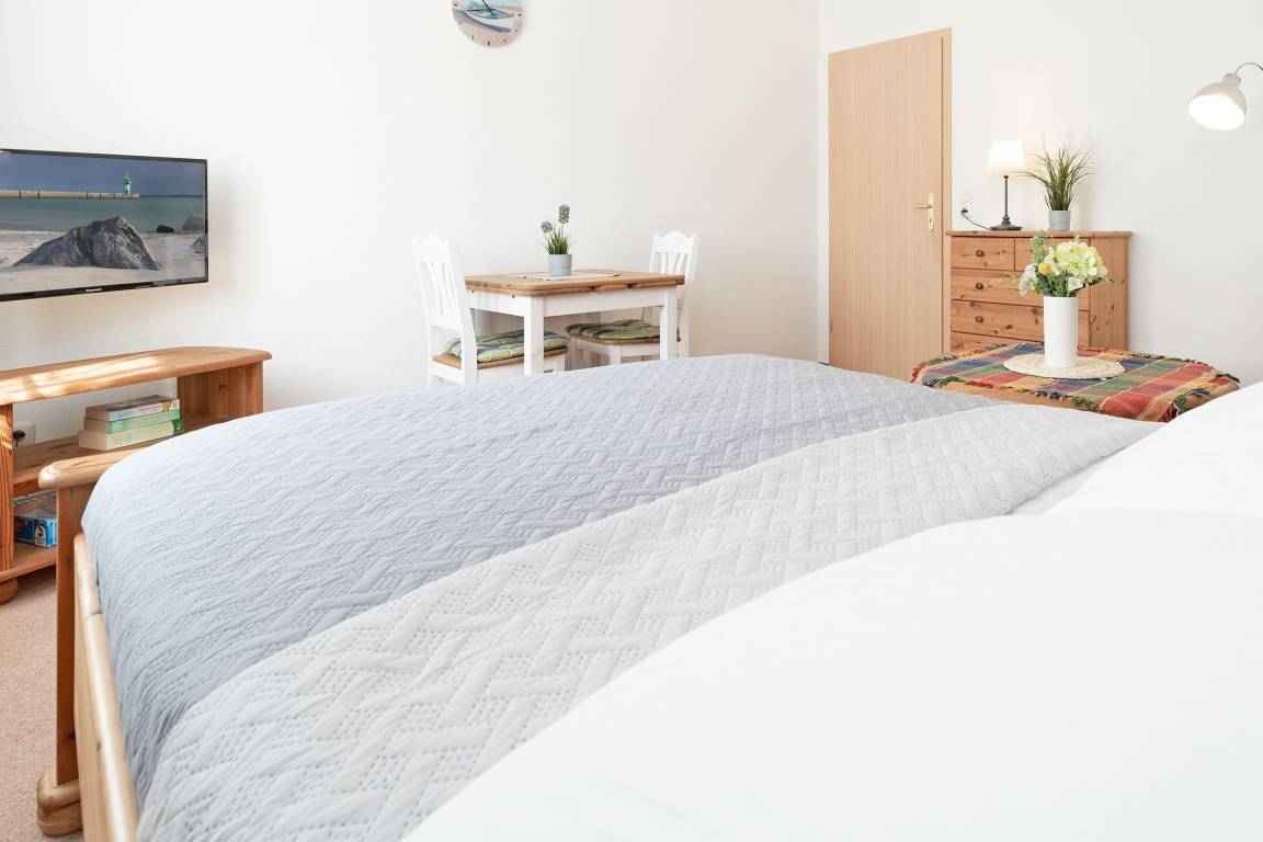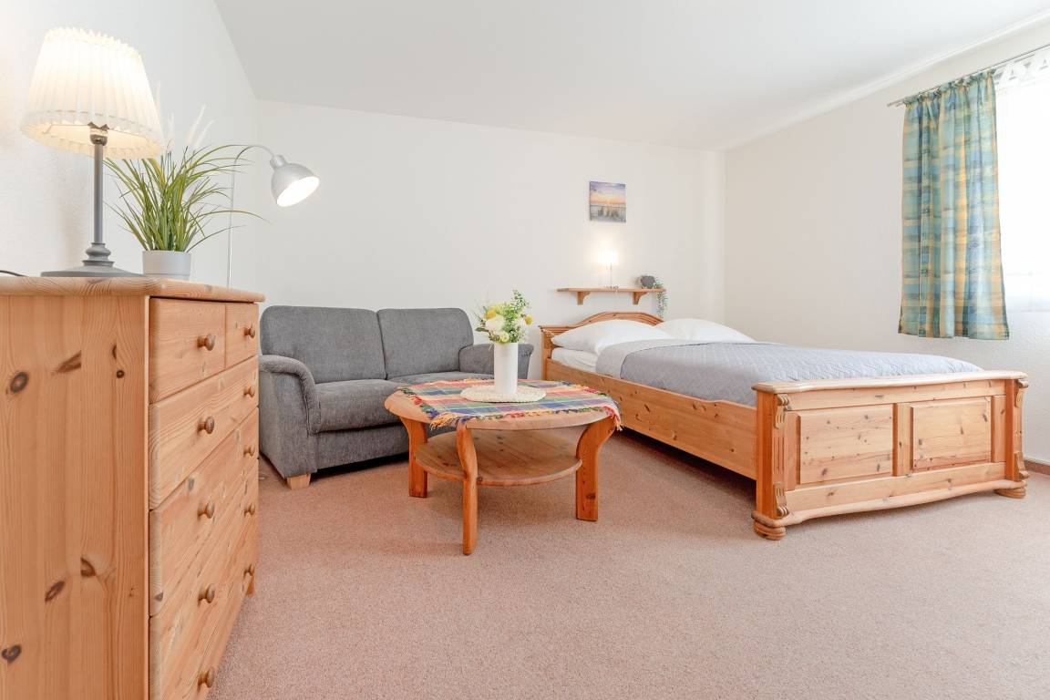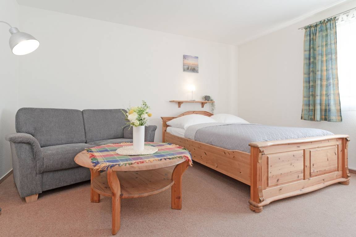 Wohn/Schlafraum: 1 Doppelbett (140x200 cm), Seeseite, Verdunkelung (Vorhänge)