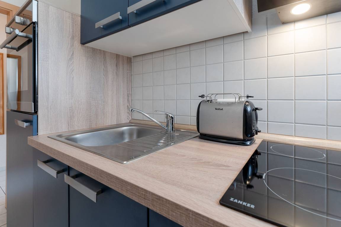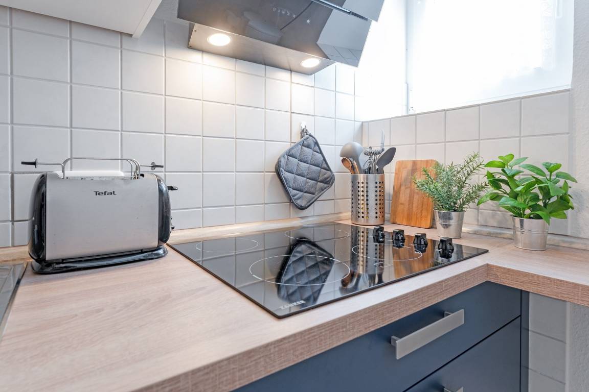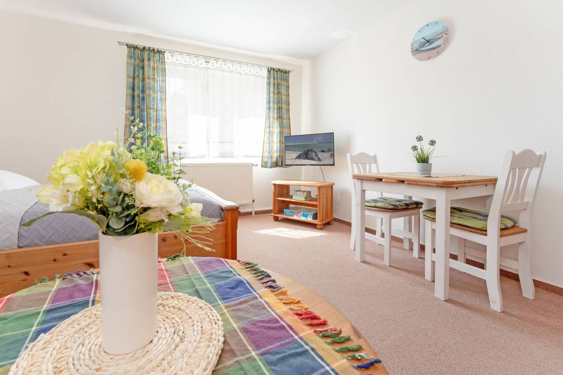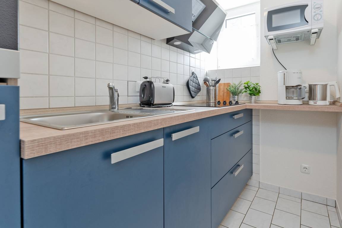Das 1-Zimmer Appartement ist ausgestattet mit einem Doppelbett (140x200 cm) sowie einem gemütlichen Esstisch für 2 Personen. Die große Sofalandschaft und der Flachbildfernseher laden zu kuscheligen Abenden ein. Die separate Küche mit Fenster, Backofen, Gefrierfach, Herd, Kaffeemaschine, Mikrowelle, Toaster und Wasserkocher ist voll ausgestattet und lädt dazu ein leckere Gerichte zu kreieren. Von hier gelangen Sie in das tageslicht-Bad mit Dusche und WC.