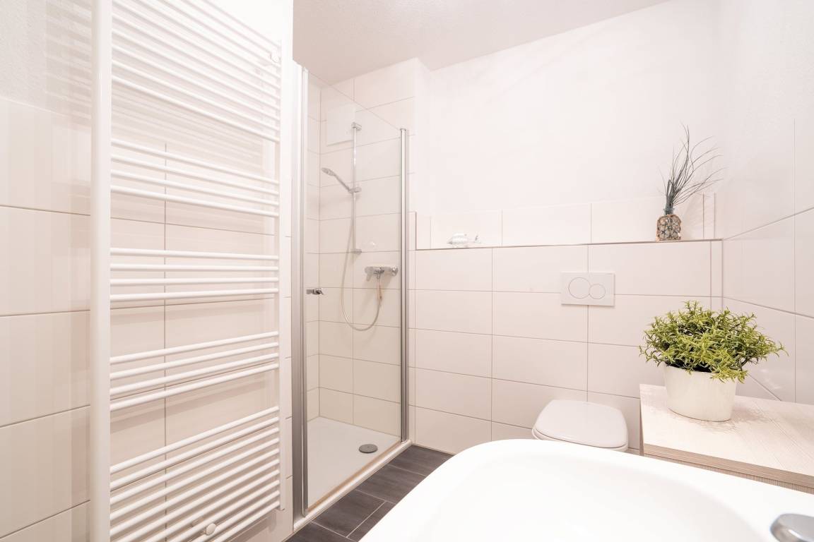 „Neue, sehr geschmackvolle Whg, großes Schlafzimmer mit sehr bequemen Boxspringbett, Küche komplett eingerichtet, großes sehr schönes Bad. Negativ: Sehr nah an dicht befahrener Stasse, nur wenig Sonne auf der Terrasse (3h morgens), Tiefgarage sehr klein u eng, das 2.Schlafzimmer nur für Kinder“