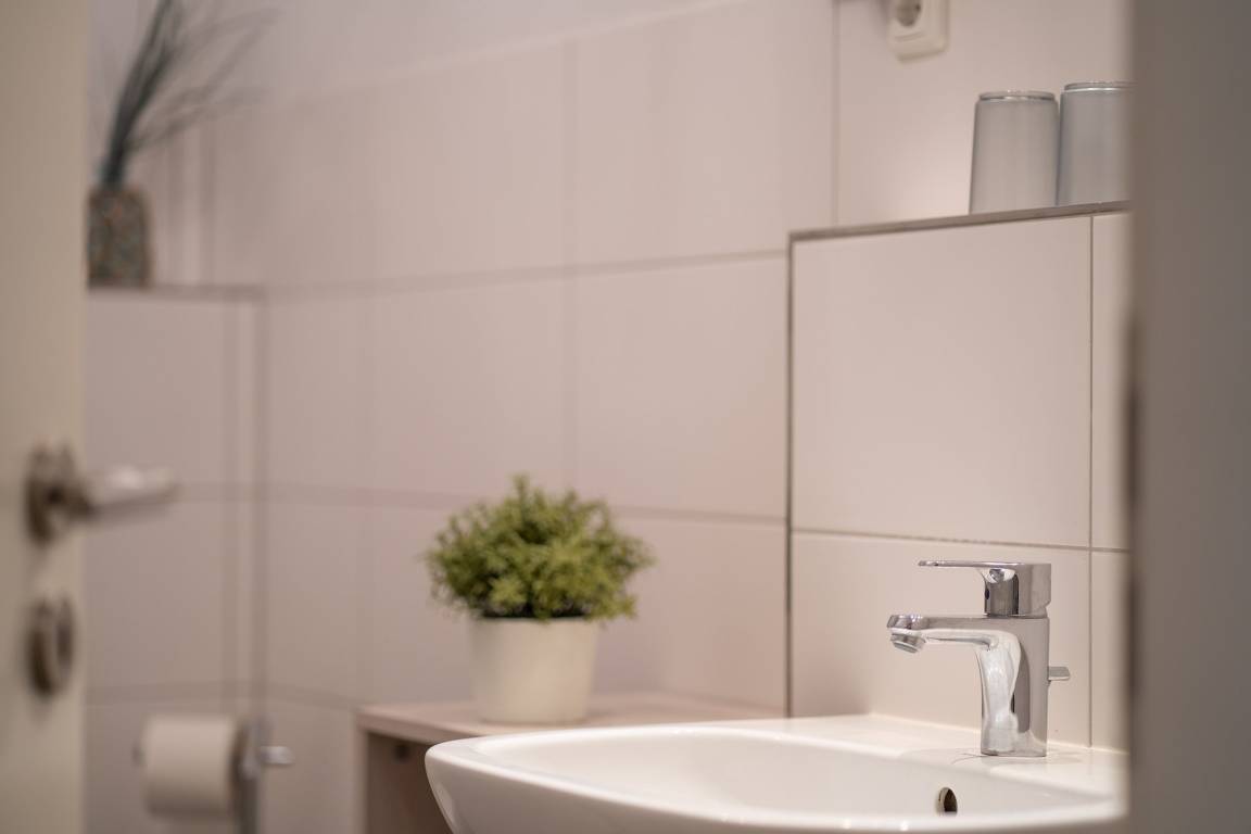 „Die Wohnung an sich ist in Ordnung, allerdings sind die Tische sehr alt und unschön und das kleine Bett total hart… Aber was am meisten negativ aufgefallen war ist die schlecht ausgestattete Küche. Es sind kaum Gläser vorhanden und alles andere sehr sehr sperrlich. Das kennen wir sonst ganz anders. Das Boxspringbett ist sehr gut, das Sofa auch und das Badezimmer ist top.“