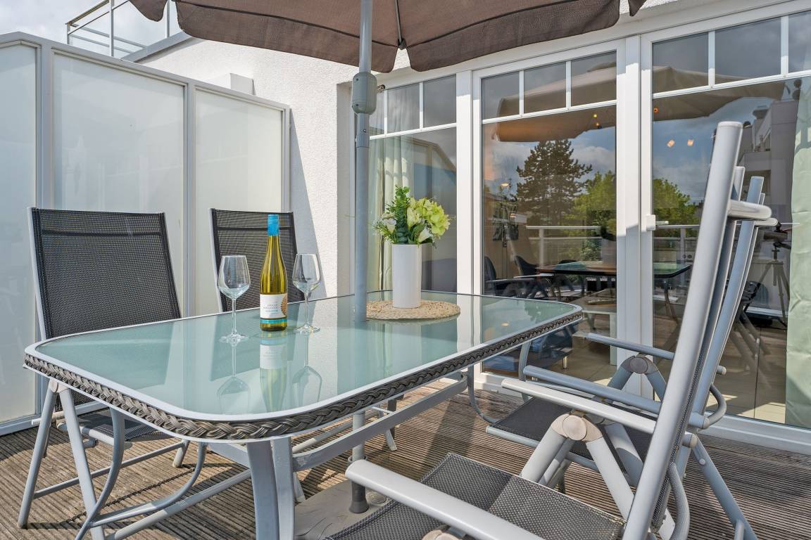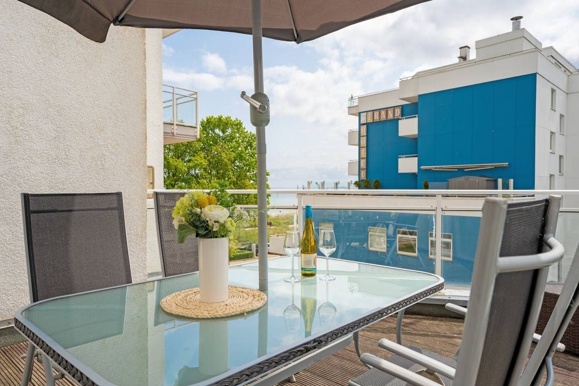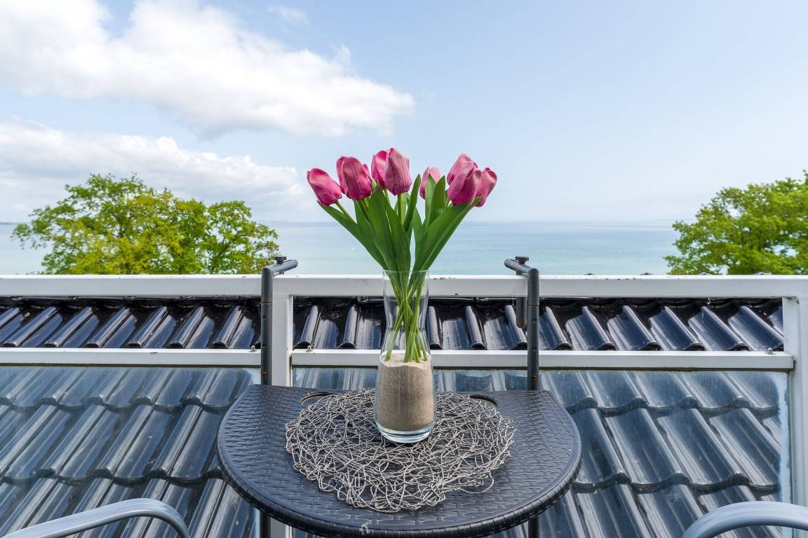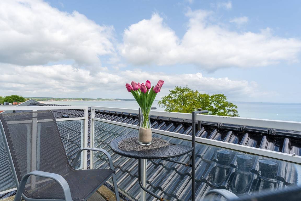 Freuen Sie sich auf ein spektakuläres Wohnerlebnis in der 1. Reihe zur Ostsee! Diese charmante 3-Zimmer-Ferienwohnung mit einer Wohnfläche von ca. 70 m² ist für bis zu 2 Erwachsene und 2 Kinder ausgerichtet und erstreckt sich über 3 Etagen, jede mit eigenem Balkon - ein Wohngefühl ähnlich wie in einem Leuchtturm! Das Turmzimmer im 5. Stock liegt über dem Dach: machen Sie es sich auf den Clubsesseln bequem und genießen Sie den atemberaubenden 360° Rundumblick über die Lübecker Bucht und das Hinterland.