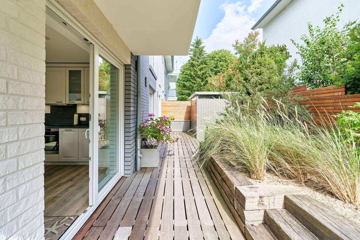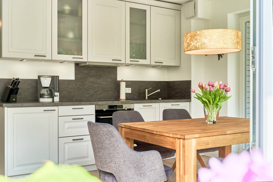 Sehr schöne, helle 2,5-Zimmer-Ferienwohnung,, ca. 55 qm, Erdgeschoss. Außenrollläden. Ansprechend angelegter Garten mit zwei herrlichen Terrassen, einer Markise, einem Wärmestrahler und einer Outdoor-Küche.
