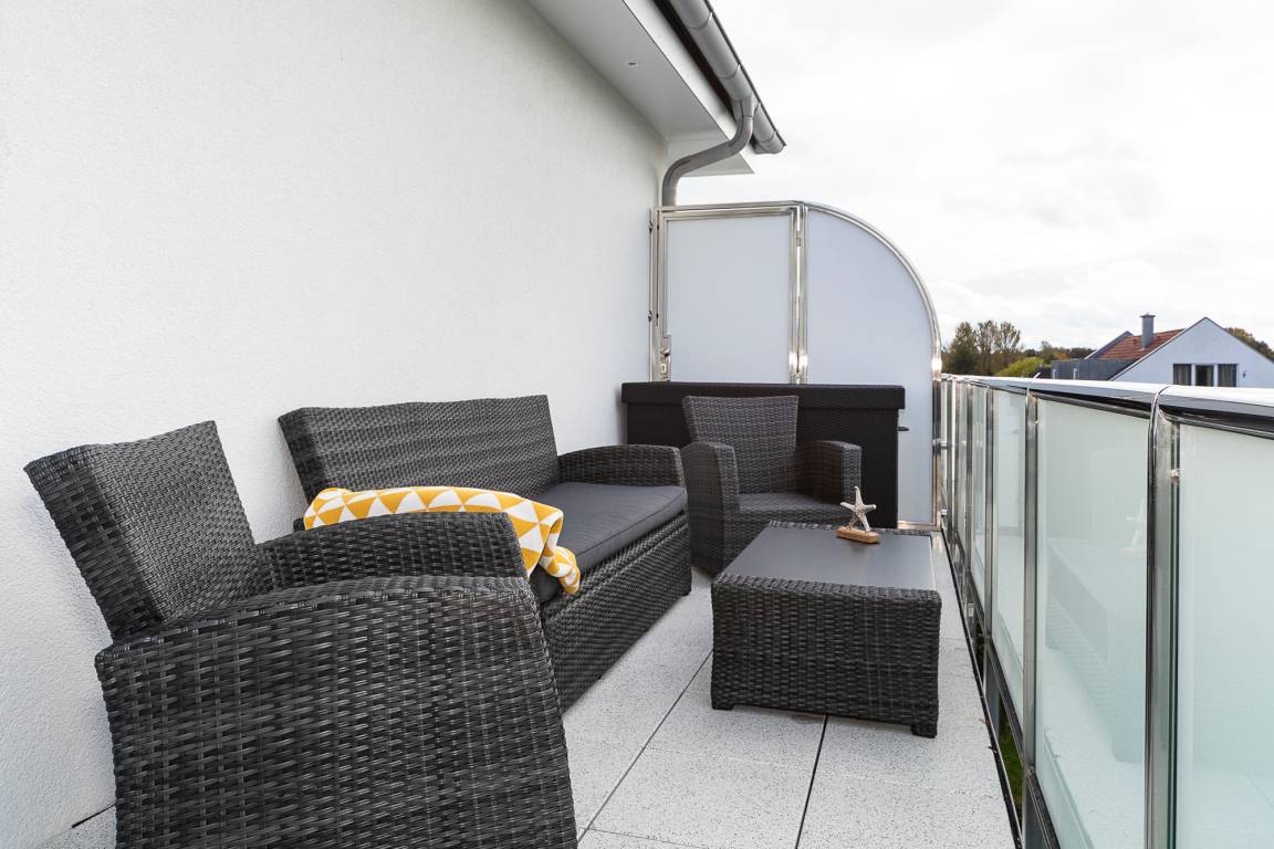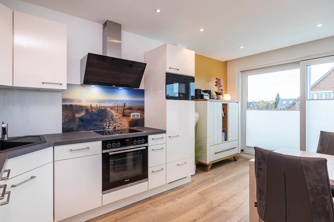 Tolle 3-Zimmerwohnung im 3. OG, 75 m² aufgeteilt auf zwei Ebenen, plus Dachterrasse, bequem mit dem Fahrstuhl zu erreichen. Außenrollläden, kostenfreies WLAN, Tiefgaragenstellplatz (Durchfahrthöhe 2,00 m), Strandkorb am nahegelegenen Strand (saisonbedingt 15.05. – 15.09.) inklusive.